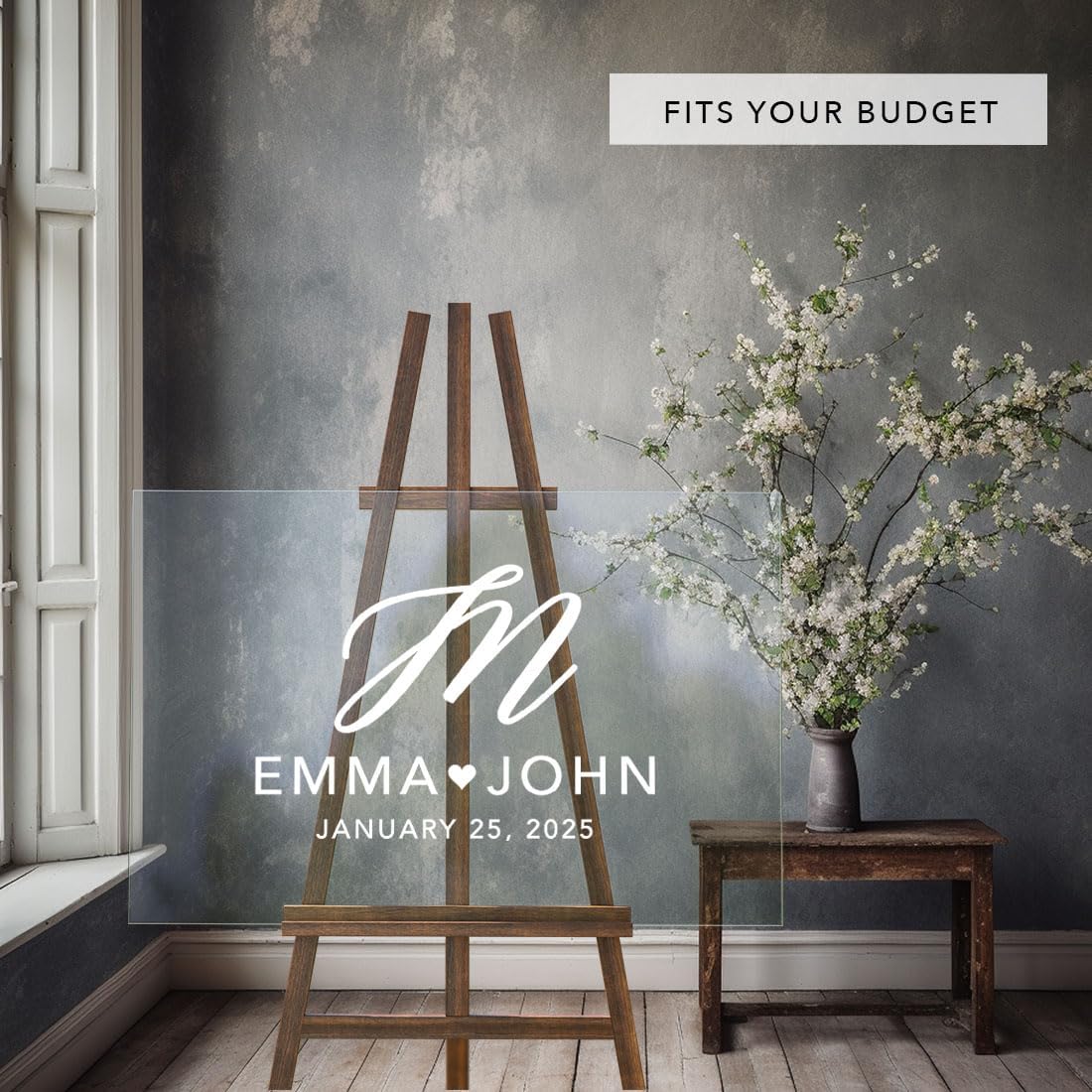 Andaz Press Custom Large Wedding Acrylic Sign, 16 x 24 Inches, Monogram Script, Personalized Sign, Welcome Sign For Modern Wedding Theme