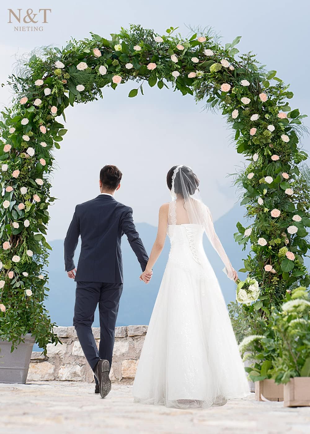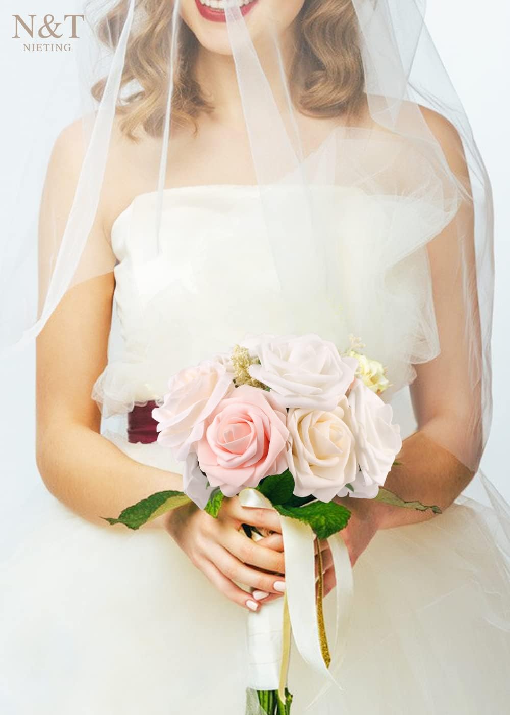 N&T NIETING Artificial Flowers, 25Pcs Fake Rose Flowers Roses for DIY Wedding Bouquets Centerpieces Bridal Shower Party Home Flower Arrangement Decorations, Series Blush Pink