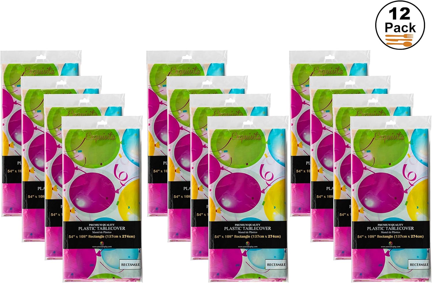 Party Solids 12 Pack Premium Quality Balloon Design Plastic Tablecloth - 54 Inches by 108 inches of Fabulous Rectangle Birthday Tablecloth with Balloon Design for 8 Foot Party Table…