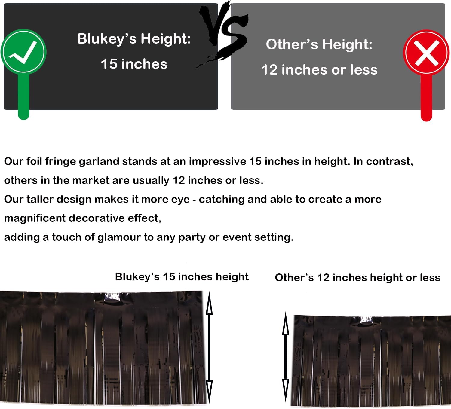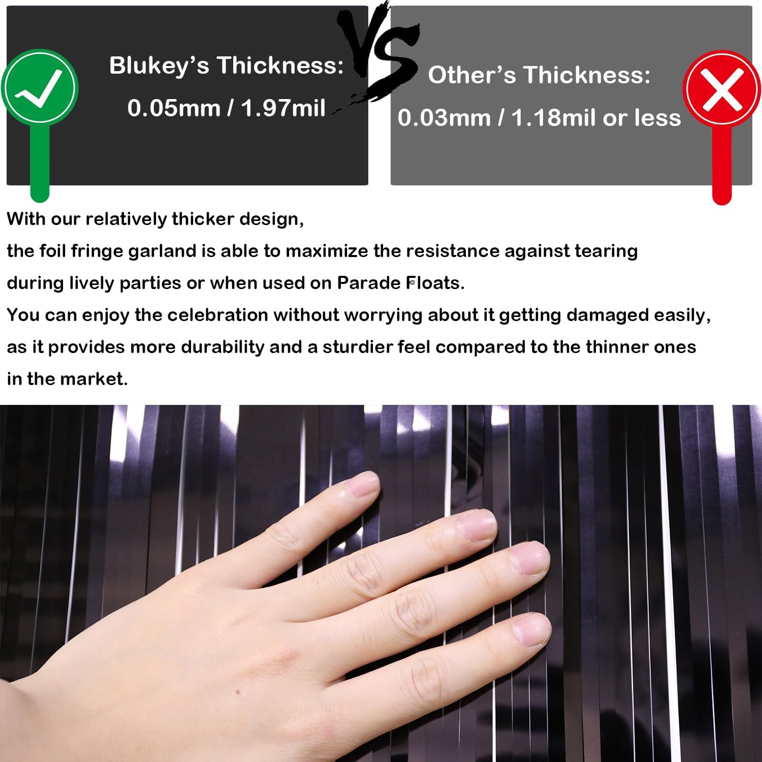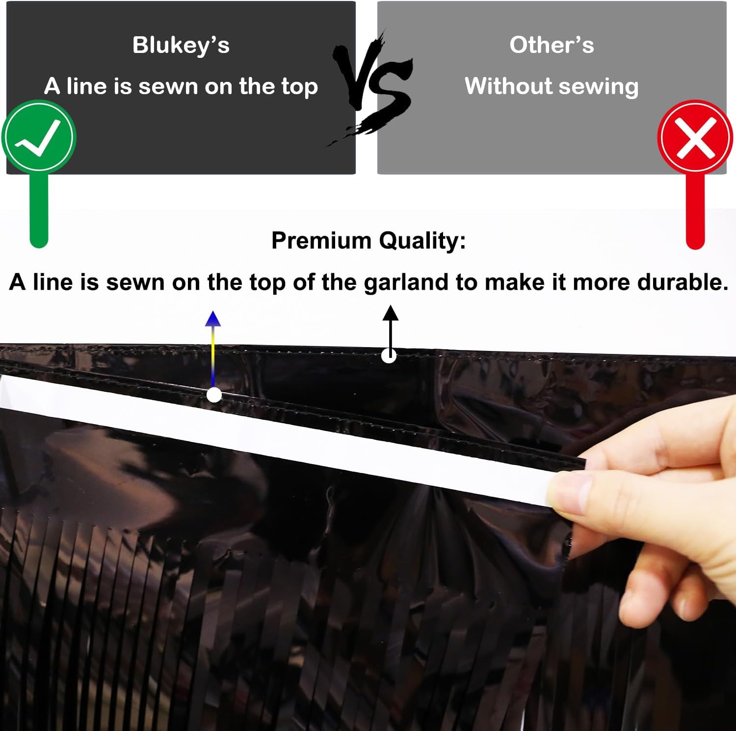• Premium Quality: Made of high quality metallic foil, lightweight and shiny. A line is sewn on the top of the garland to make it more durable.
