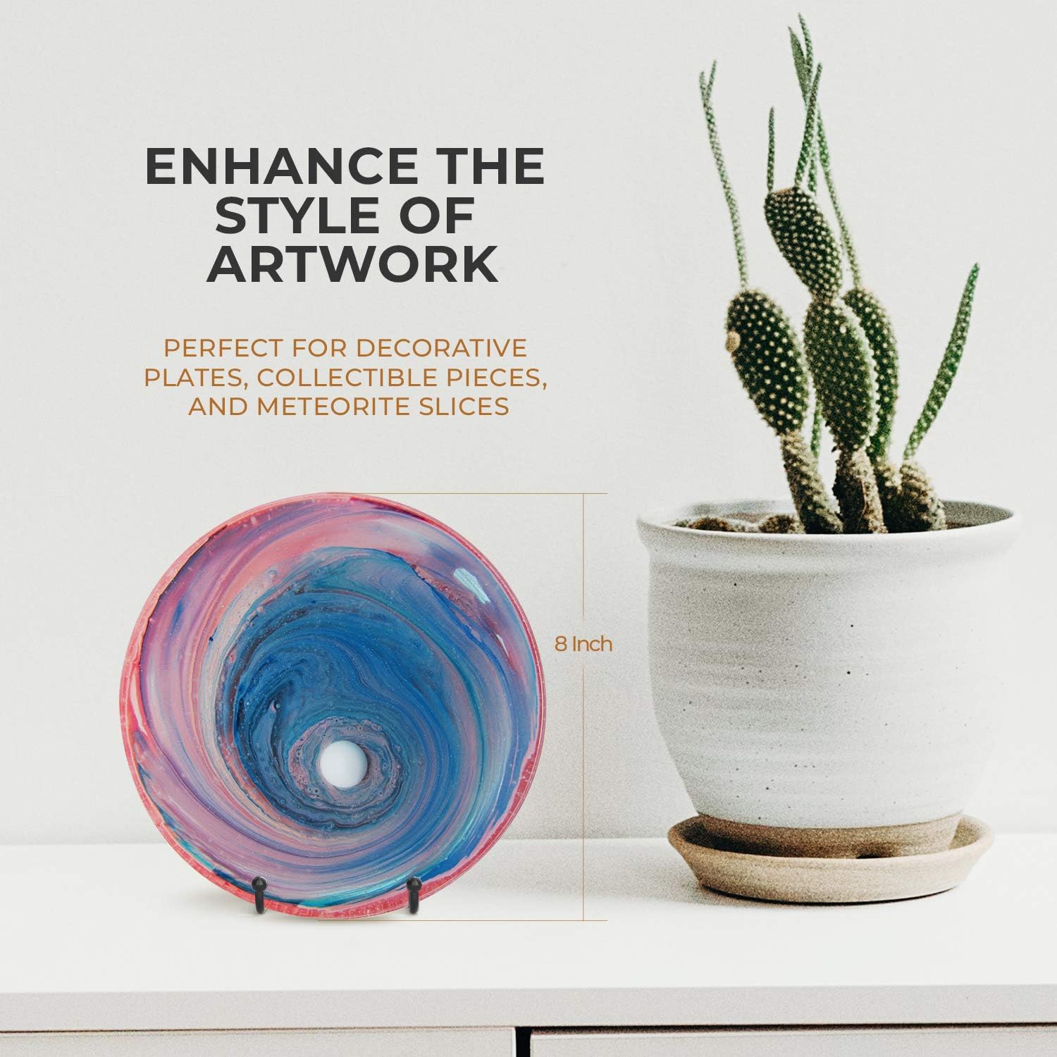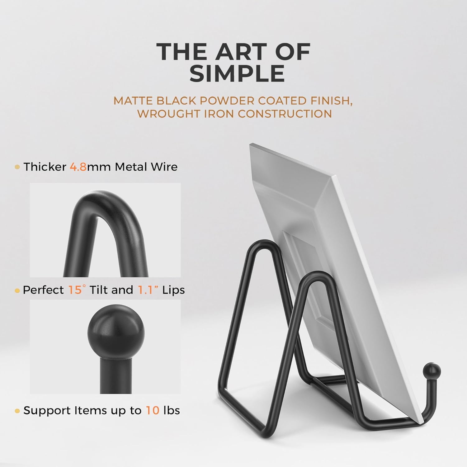 • SMALL BUT STURDY DESIGN: - This plate display stands has a matte black powder-coated finish and wrought iron construction, strong enough to hold decorative plates, painted tiles, commemorative plaques, photo frames, postcards, pictures, book, canvas, etc.