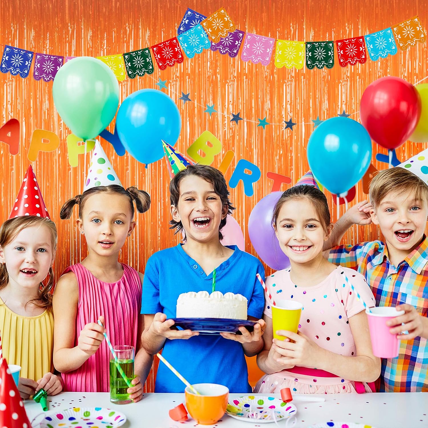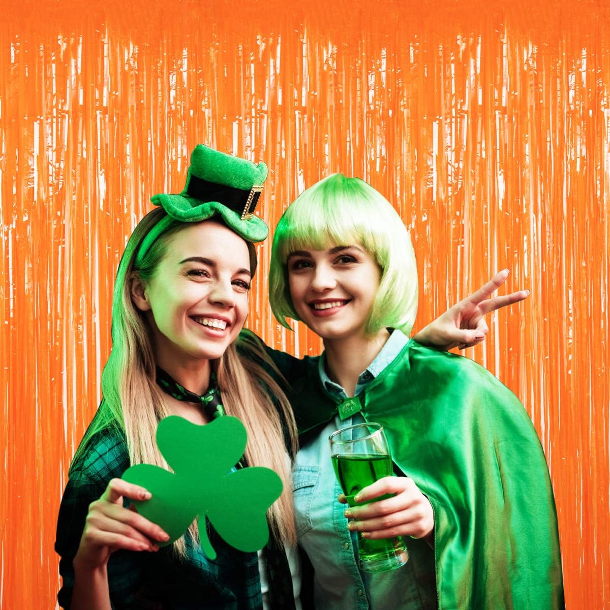 • Package contents:4 pack orange foil curtains; Size (wide x drop):3 x 8 feet, wonderful accessories for decorating doors and walls
