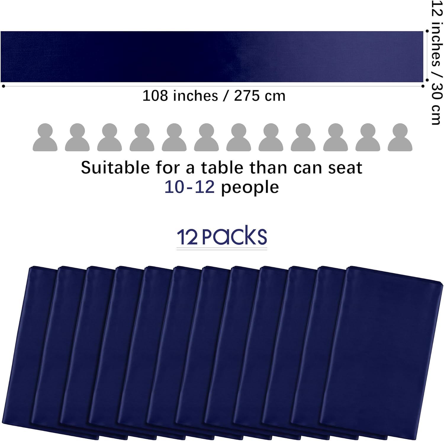 Aneco 12 Pack Satin Table Runner 12 x 108 Inch Navy Blue Long Wedding Satin Silk Table Runner for Wedding Banquet Graduations Birthday Party Decoration