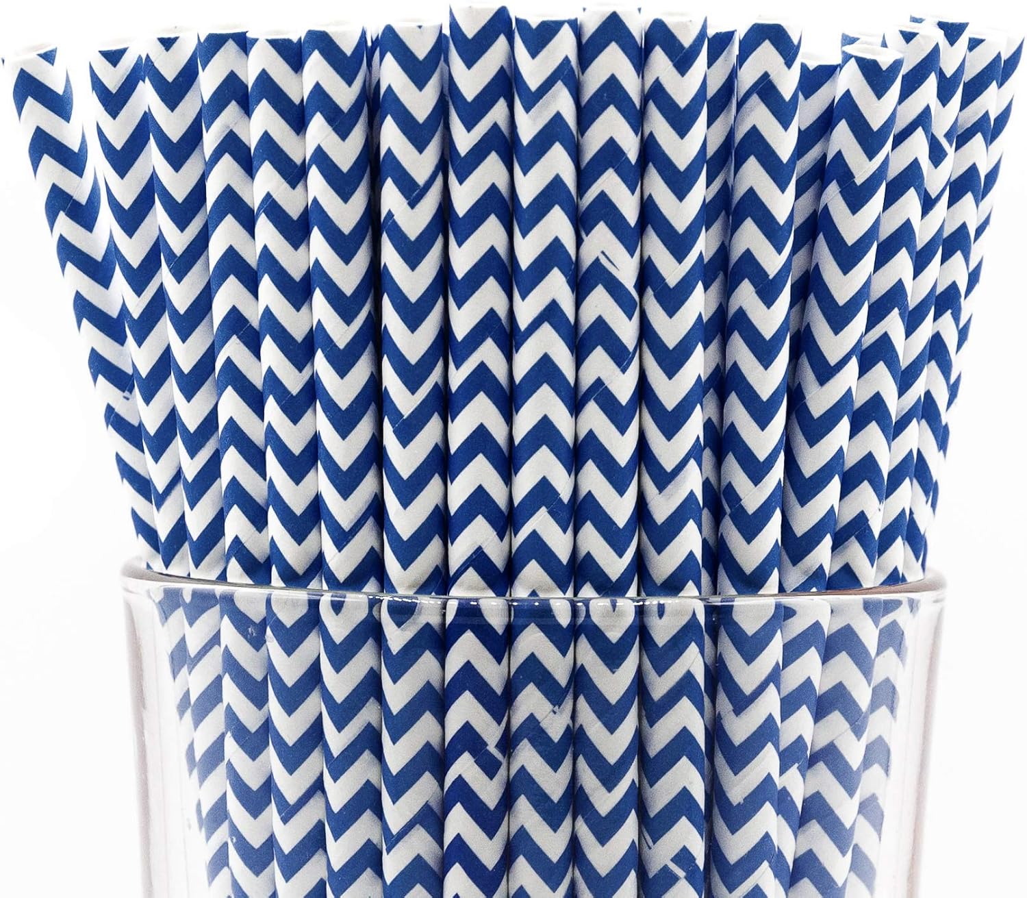 Pack of 150 Navy Blue Chevron Biodegradable 4-Ply Paper Drinking Straws (Compostable, Non-toxic, BPA-free)