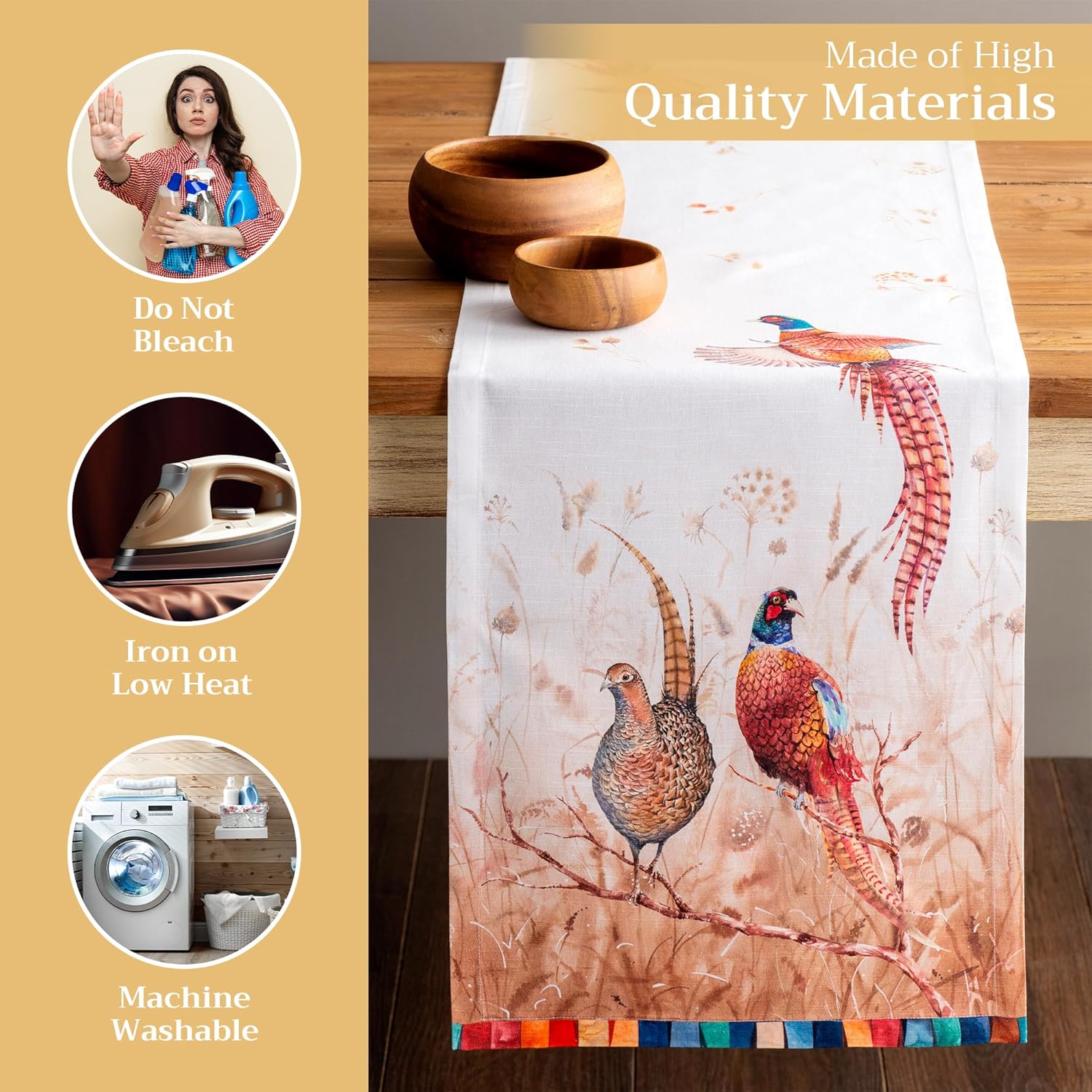 Maison d' Hermine Table Runner 100% Cotton Single Layer Table Runners 108 inches Long for Thanksgiving Christmas Decorations Home Kitchen Dining Party Wedding (Faisan D'Automne, 14.5" x 108")
