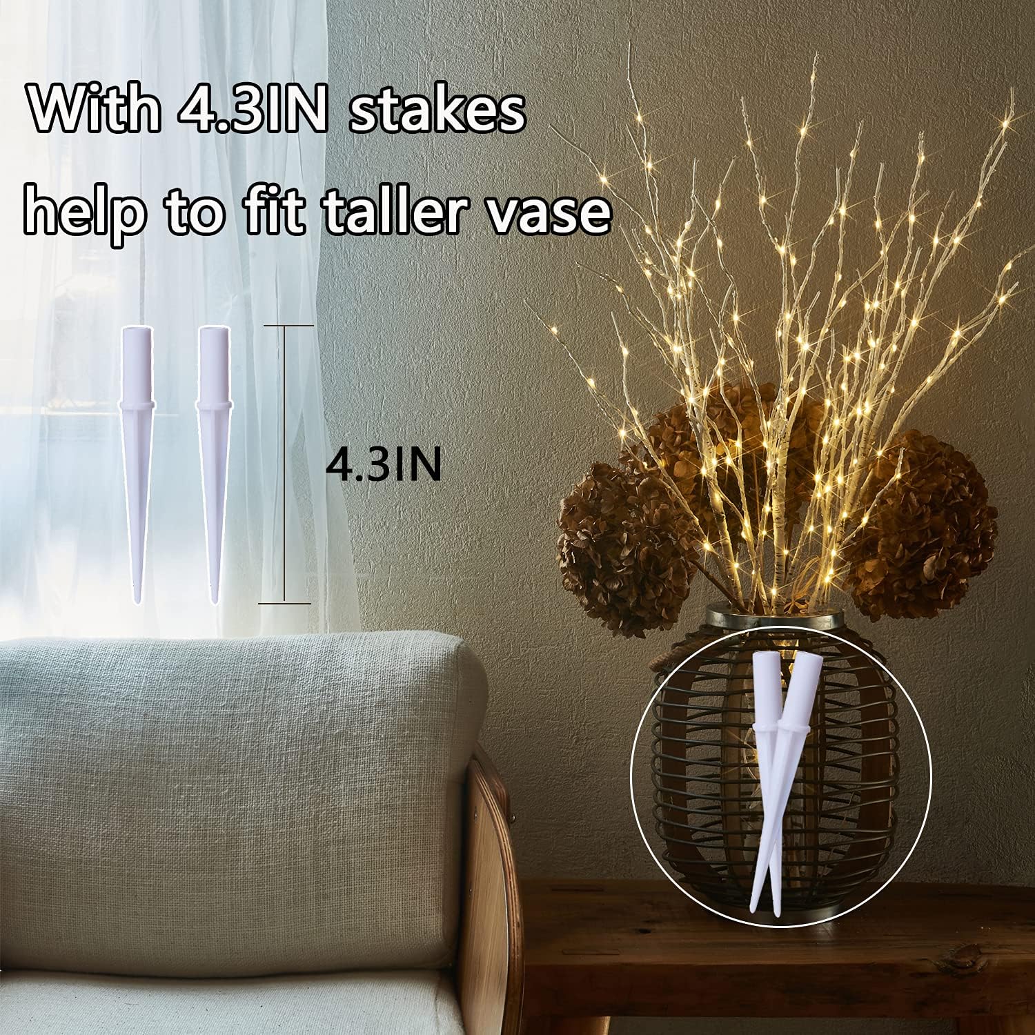 • 🎄【All-matching lighted stems】You can embellish your existing silk or dried floral arrangements with these stunning pre-lit willow branches, or use them alone for an equally dramatic look.Assembled with 2 plastic stakes helps to fit with a taller vase and make it easy to use in garden.