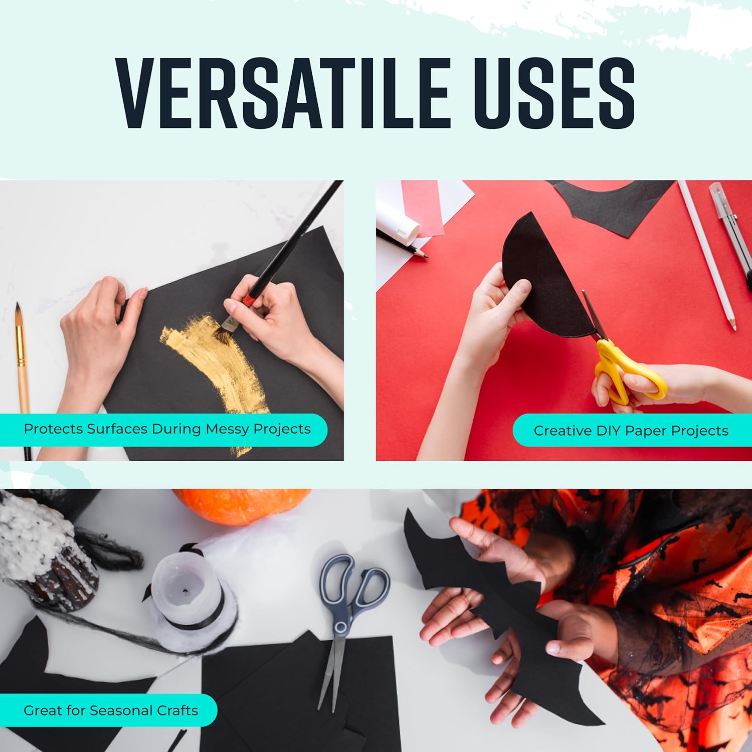 • VERSATILE CRAFTING: This versatile craft paper can work with a wide variety of materials. Use these black craft paper rolls for acrylic and oil art paints, chalk, crayon, markers, felt pens, finger painting, water color, tempera, craft paint and more