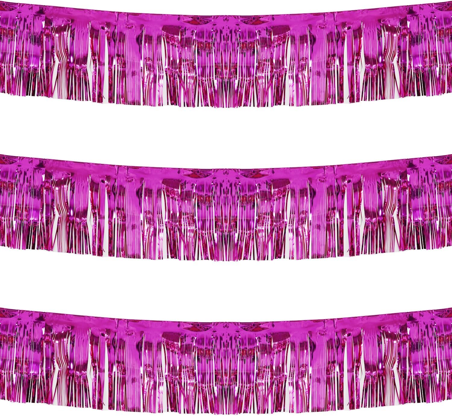 Thick 10 feet by 15 inches Fuchsia Foil Fringe Garland - Pack of 3 | Shiny Metallic Tassle Banner for Car Parade Floats, Wedding, Birthday | Wall Hanging Fringe Garland Banner (Fuchsia)