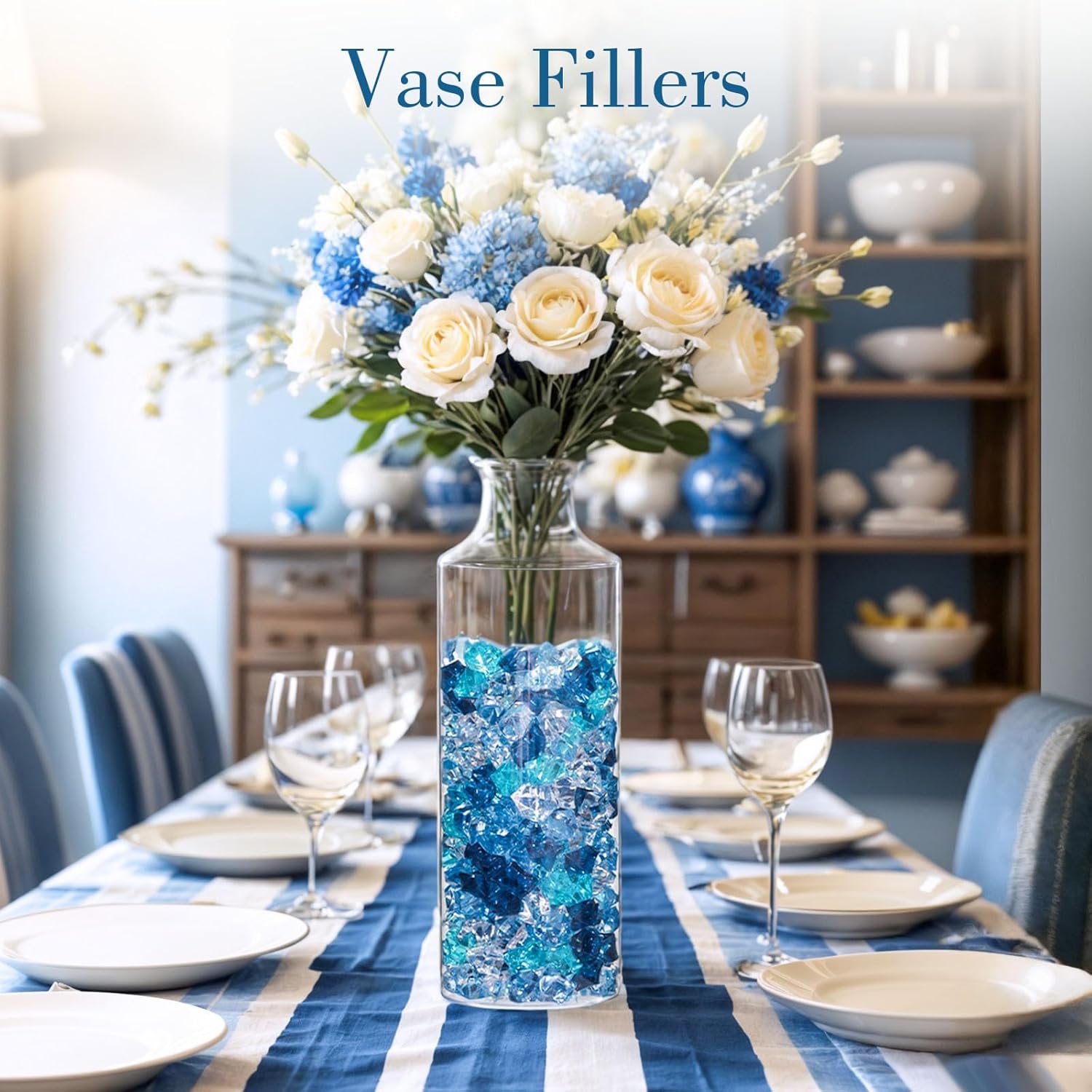 DomeStar 150PCS Fake Ice, Acrylic Blue Gems, Vase Fillers Fish Tank Rocks Aquarium Tank Decor Table Scatter Decoration