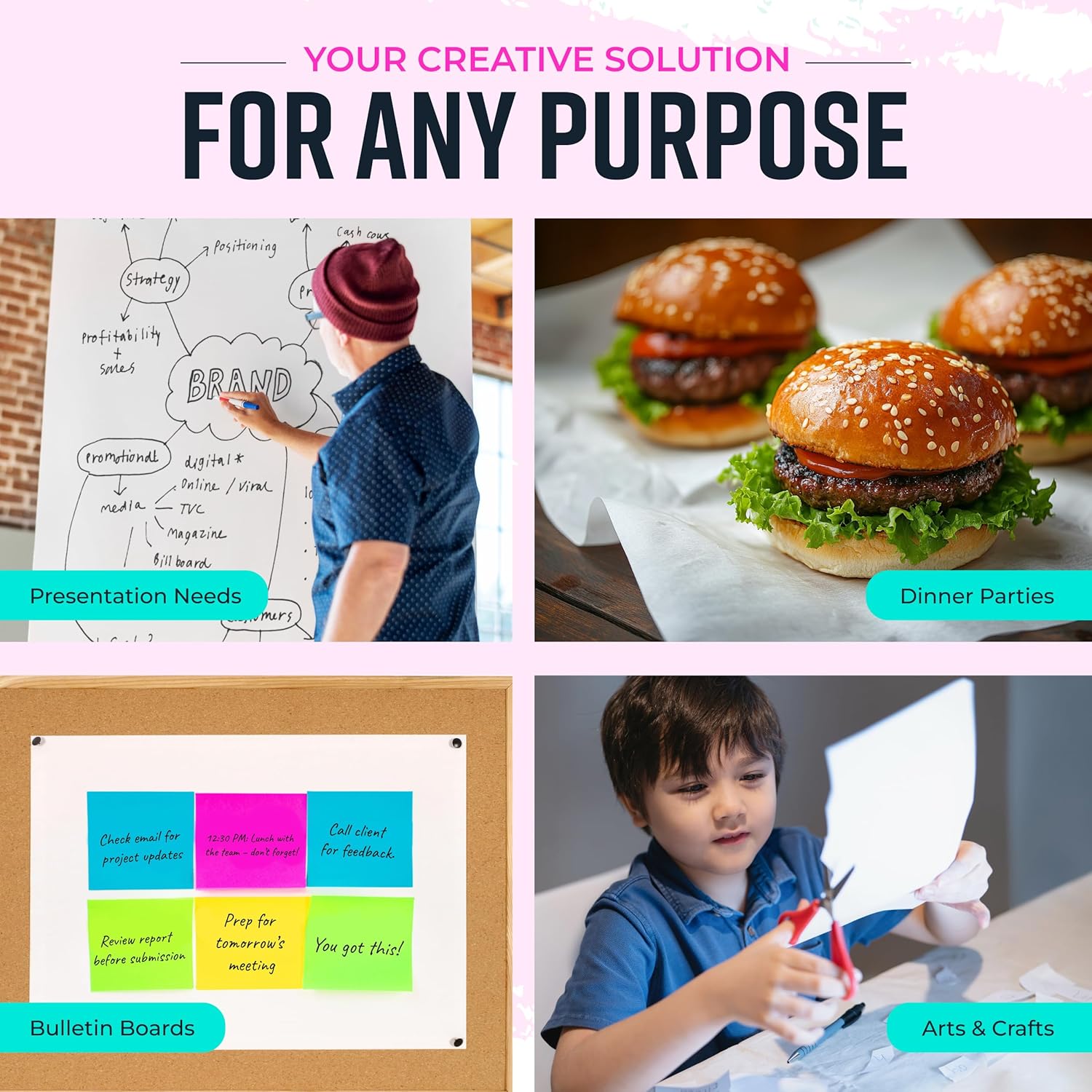 • Easily Customizable Size and Shape; This big roll paper, an art easel in its own right, allows you to cut and shape the paper as required, transforming into your own art board or even bulletin board paper roll