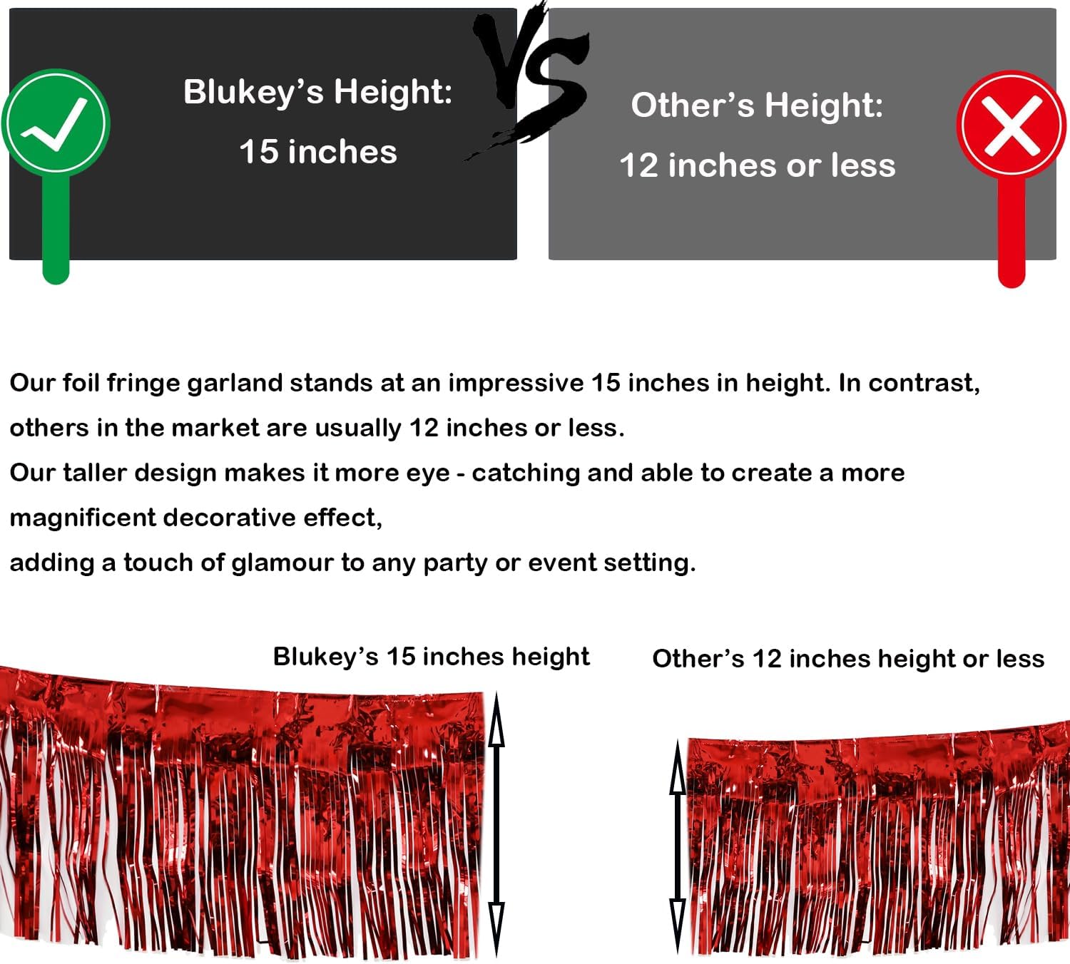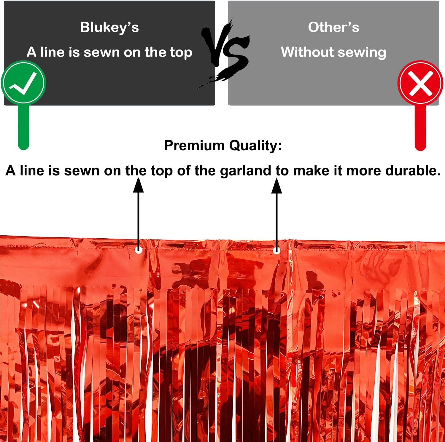 • Premium Quality: Made of high quality metallic foil, lightweight and shiny. A line is sewn on the top of the garland to make it more durable.