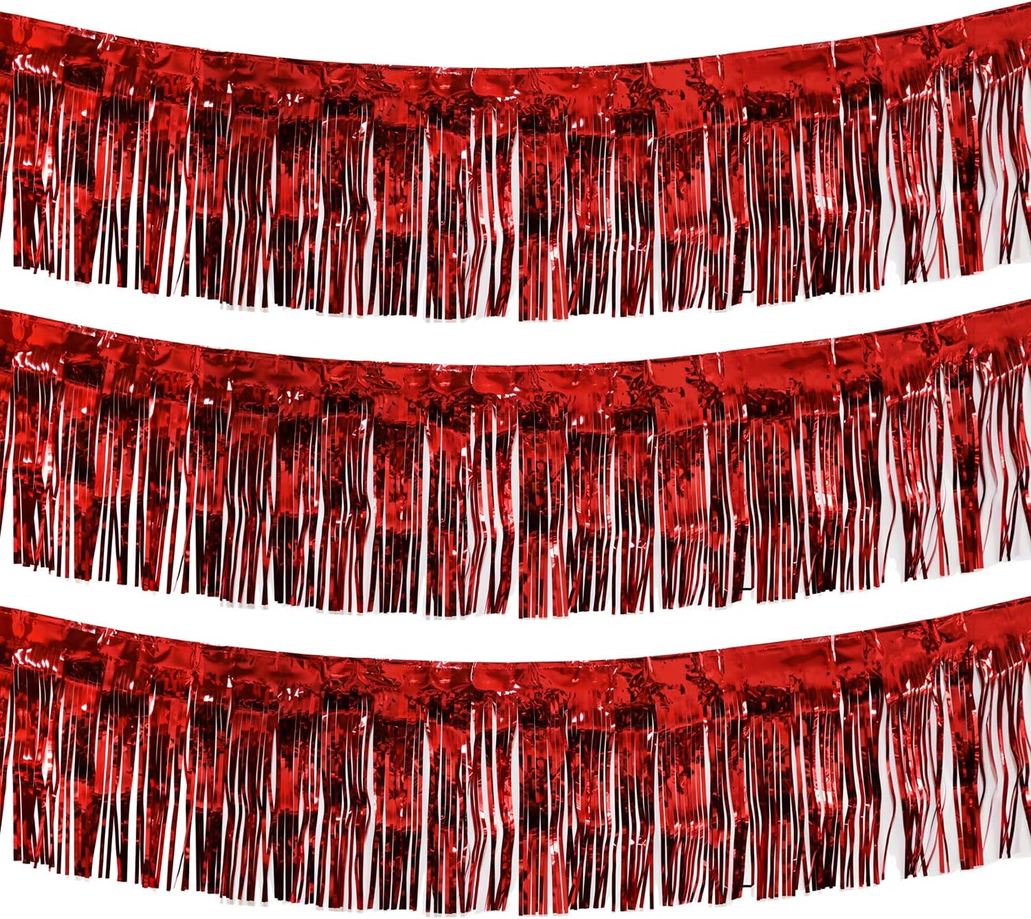 Thick 10 Feet by 15 Inch Red Foil Fringe Garland - Pack of 3 | Shiny Metallic Tinsel Banner for Parade Floats, Bridal Shower, Wedding, Birthday, Christmas | Wall Hanging Drapes (3)