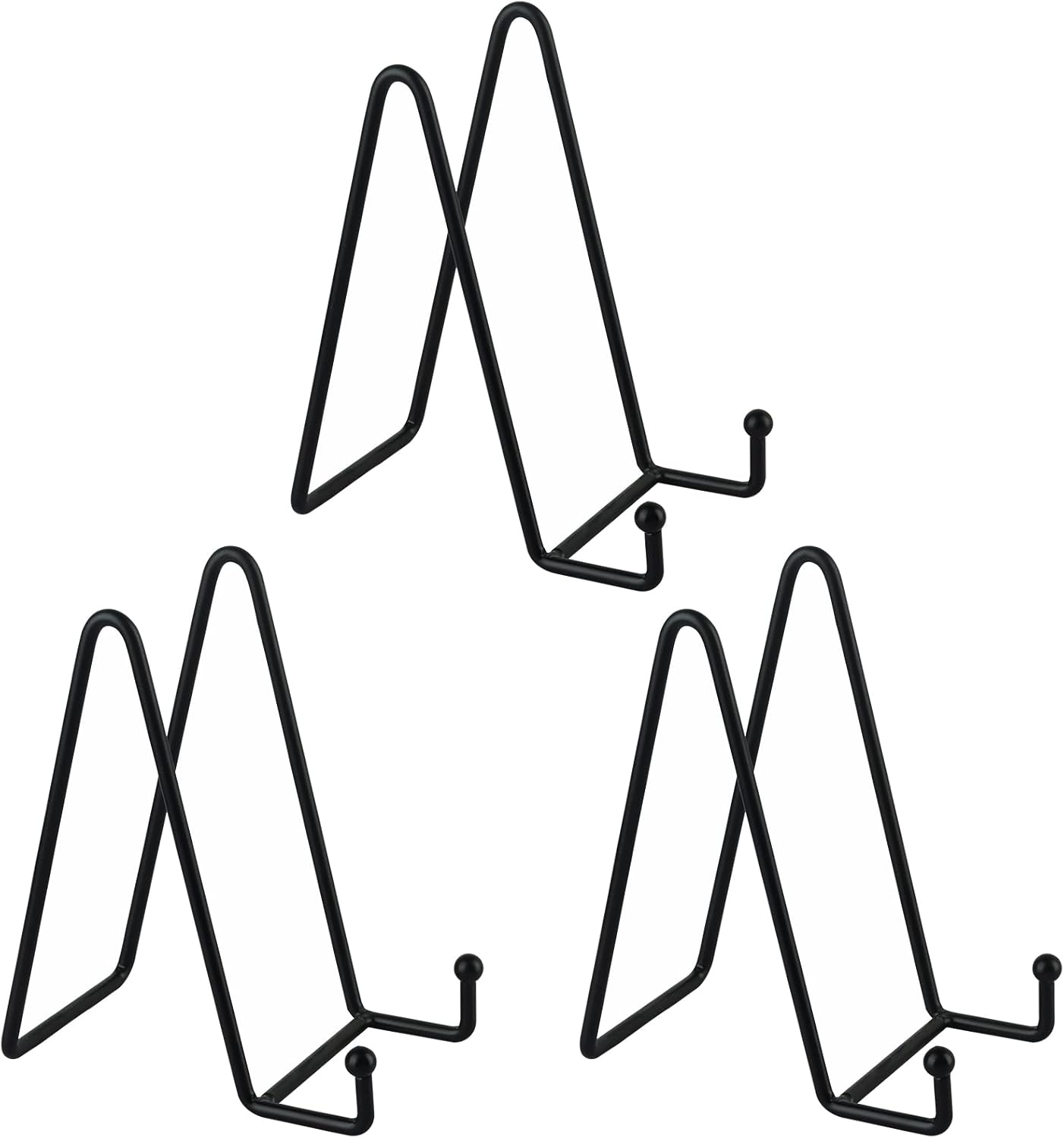 Decolore 3 Pack 6 Inch Black Metal Display Stands Plate Holder Display Stands for Picture, Decorative Plate, Book, Photo Easel, Artistic Work (3 Pack, 6 inch)