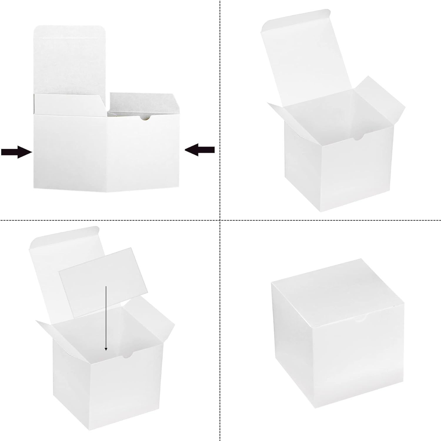 Xxcxpark 48 PCS White Gift Boxes 4x4x4 inches, Decorative Party Favor Gift Packaging Box with Lid for DIY Crafting, Cube, Cupcake, Kraft Present Boxes for Birthday, Wedding, Anniversary