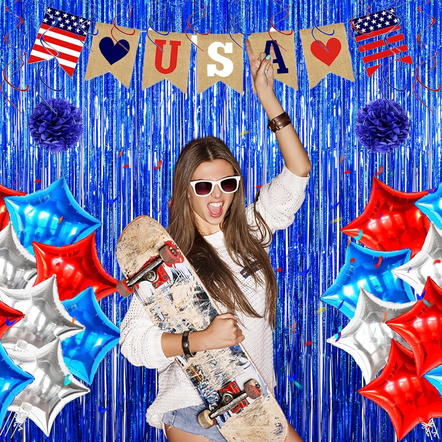Foil Fringe Curtains Party Decorations - Melsan 3 Pack 3.2 x 8.2 ft Tinsel Curtain Party Photo Backdrop for Independence Day Decorations Birthday Party Baby Shower or Graduation Navy