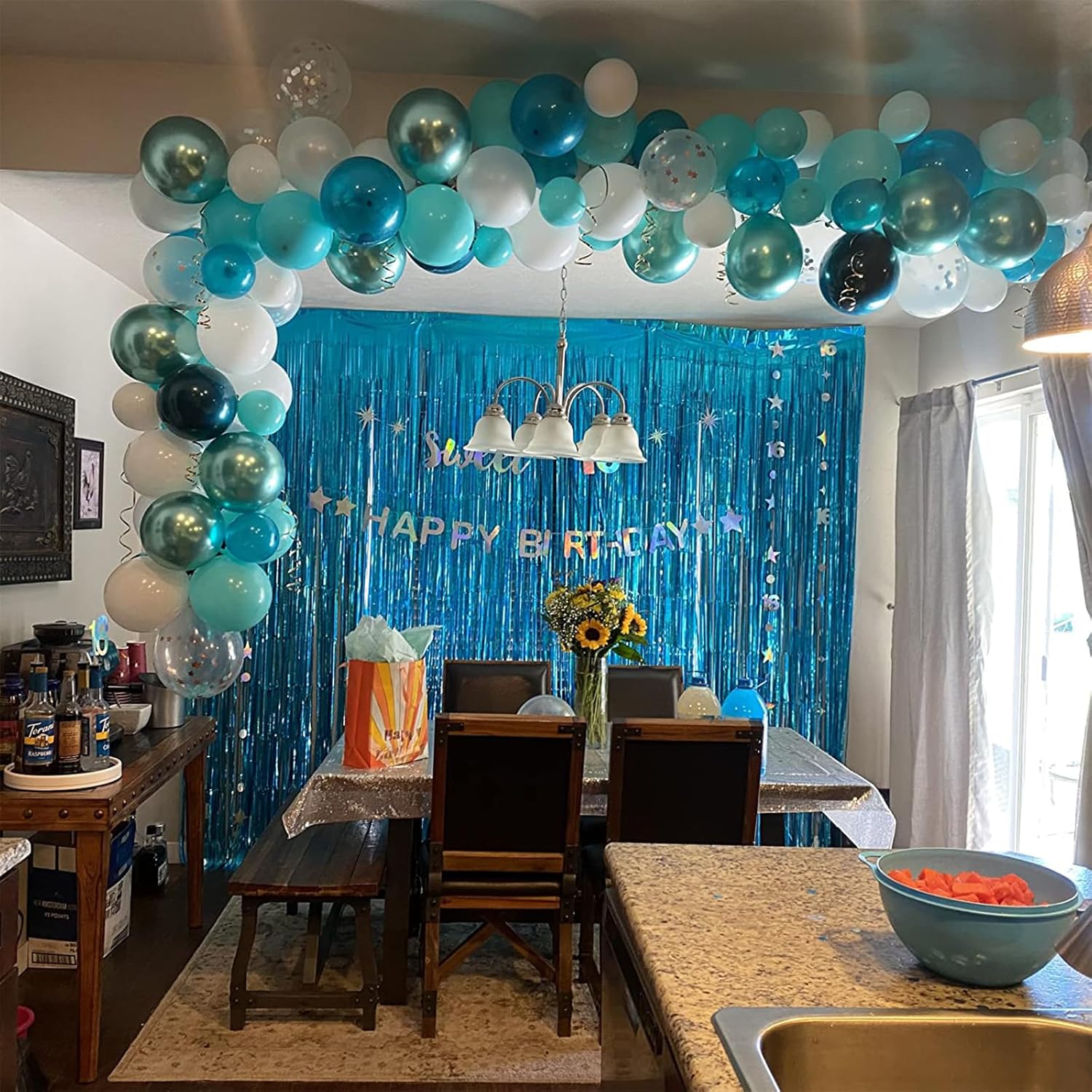 Foil Fringe Curtains Party Decorations - Melsan 3 Pack 3.2 x 8.2 ft Tinsel Curtain Party Photo Backdrop for Birthday Party Baby Shower or Graduation Decorations April fool's Day Decorations Teal