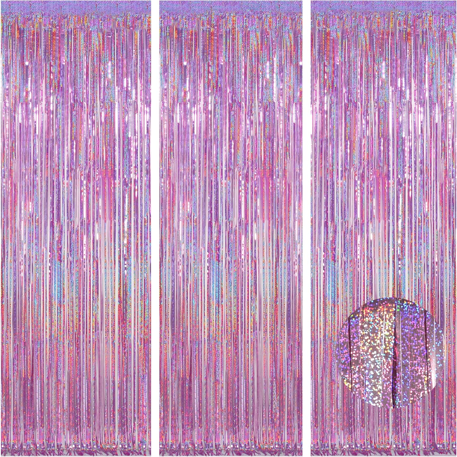 Melsan 3 Pack 3.2 x 8.2 ft Sparkling Pinkish Purple Tinsel Fringe Curtain Backdrop Glitter Decor for Birthdays, Bachelorette, Weddings, Photo Booth | Reusable Princess & Y2K Party Backdrop