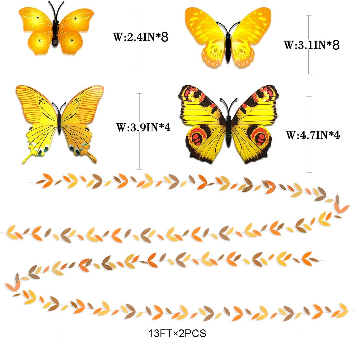 • 🧡PACKAGE CONTAINS- 2×fall color leaves garland,4×paper folding fan,8×paper flower pom poms,1×paper beige white lantern,1×paper orange lantern,1×paper brown lantern,1×paper yellow lantern,24×butterfly sticker.4×orange ribbon.
