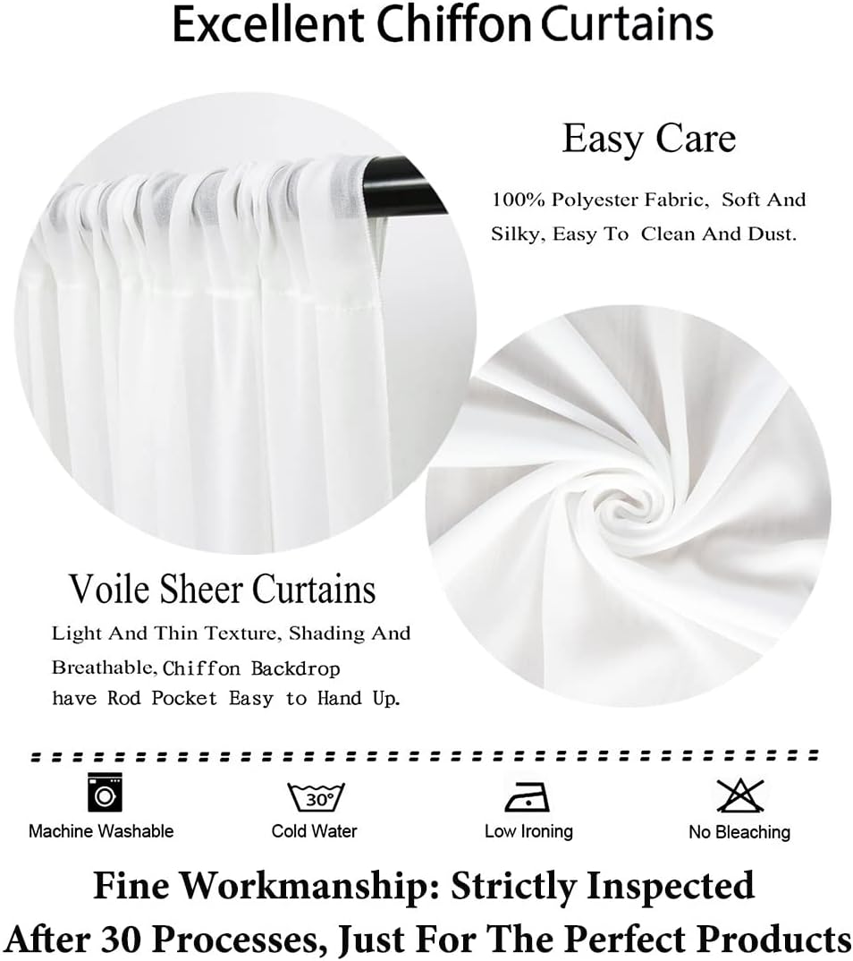 • ★ SHEER CHIFFON CURTAINS :Includes 2 Panels Width 29'' by 108'' Long chiffon backdrop curtainWhite, total area of 5ft wide by 9ft high