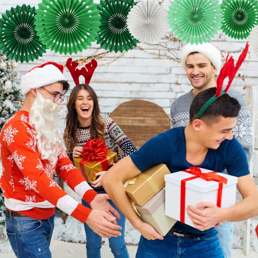 • ★Hanging decoration kit★party honeycomb paper flower fan set includes 11 paper flower fans of different sizes, among which the hollow paper flower fan size is 16 inches * 3, 12 inches * 3, 8 inches * 3, 6 inches *2,color include dark green, Christmas green, light green,white.