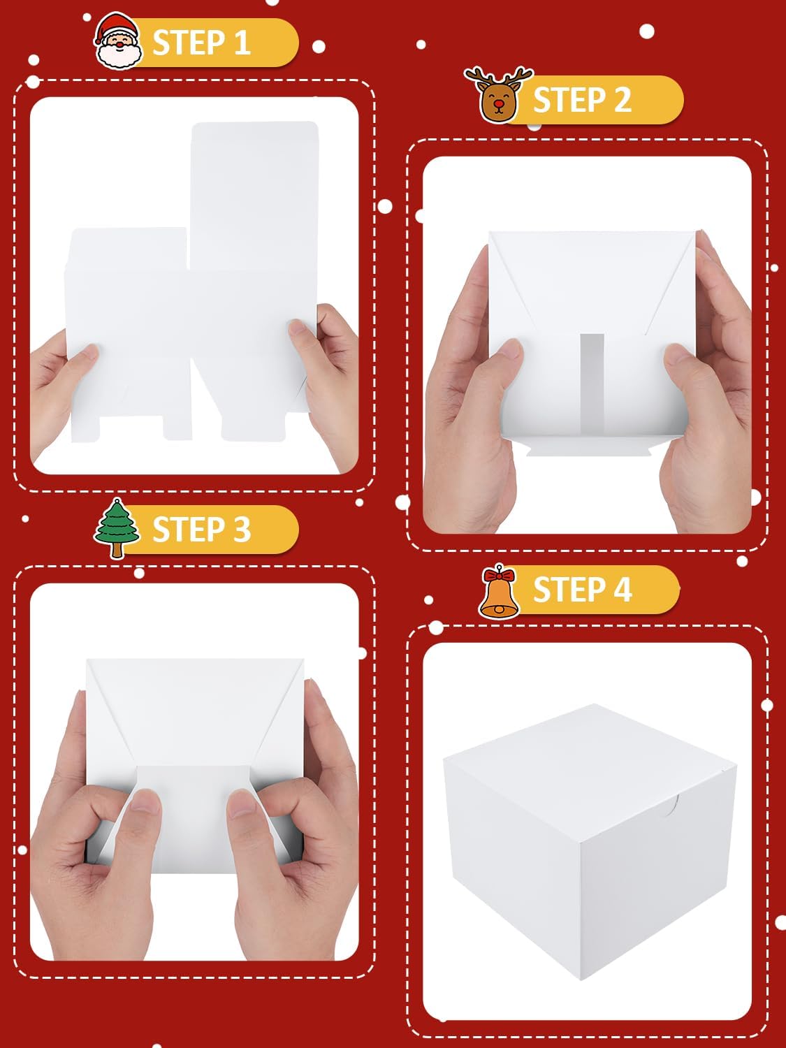 • Gift Boxes 10 Pack 8x8x4: Eupako white gift boxes are made of high quality kraft paper, sturdier and more durable than others in bearing capacity with a elaborate bottom structure. Gift Box Size: 8x8x4 Inches