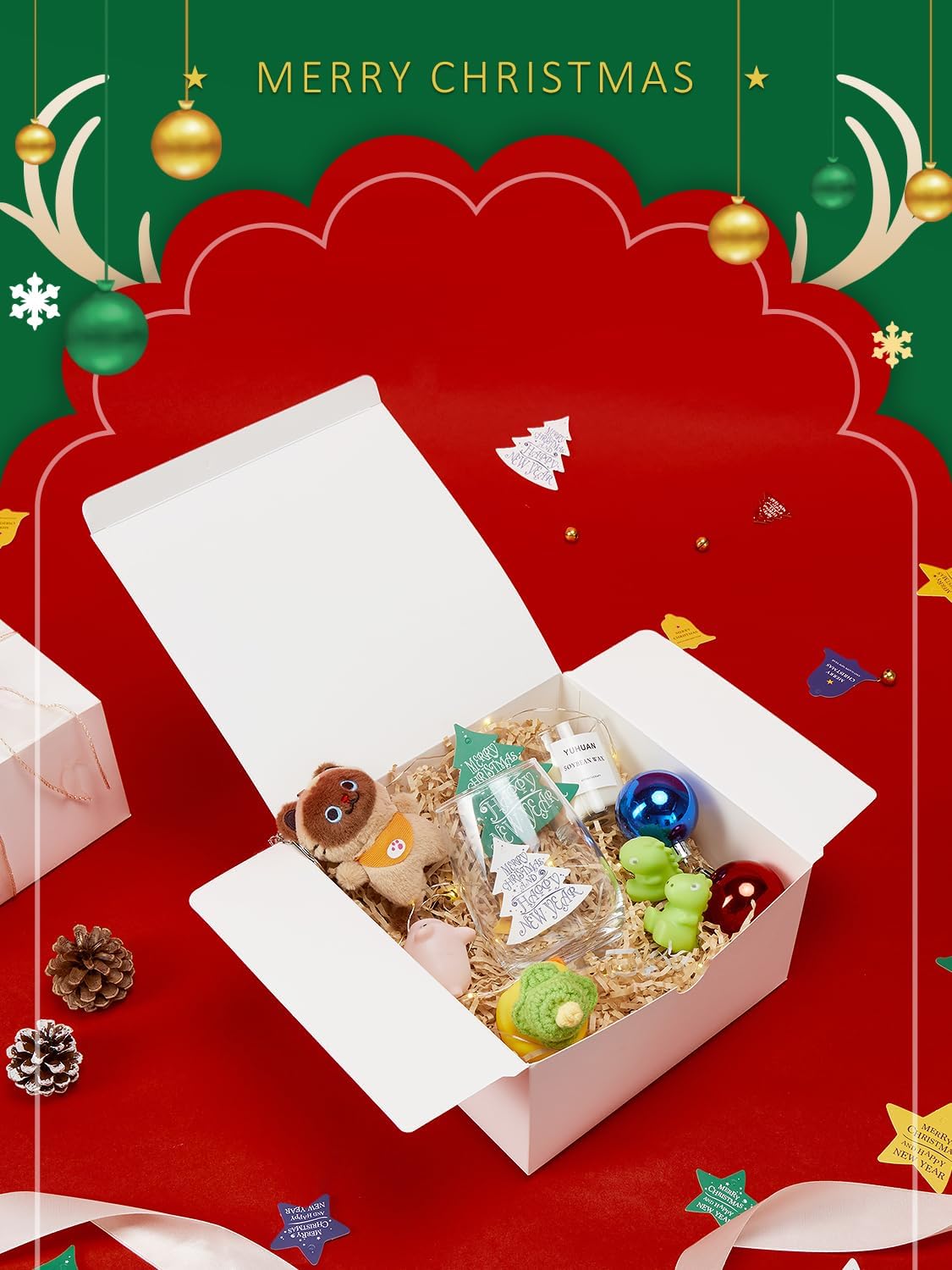 • Multipurpose Gift Boxes: These kraft gift boxes are the perfect size for coffee mugs, wine glass, tumbler cups, champagne, jewelry and more