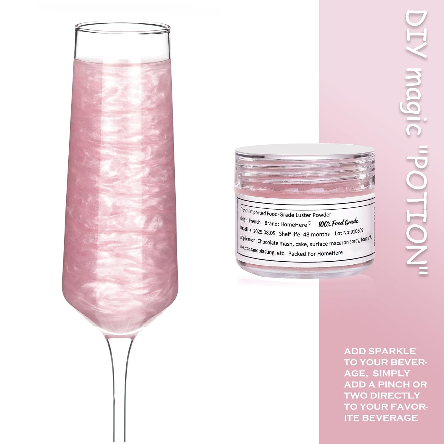 HomeHere Edible Luster Dust Food-Grade Glimmer Powder Glitter for Cake Decorating 7g, Edible Sprinkle Glitter for Cocktails Drinks Baking Candy Dessert Chocolate Vegan Tasteless, Light Pink