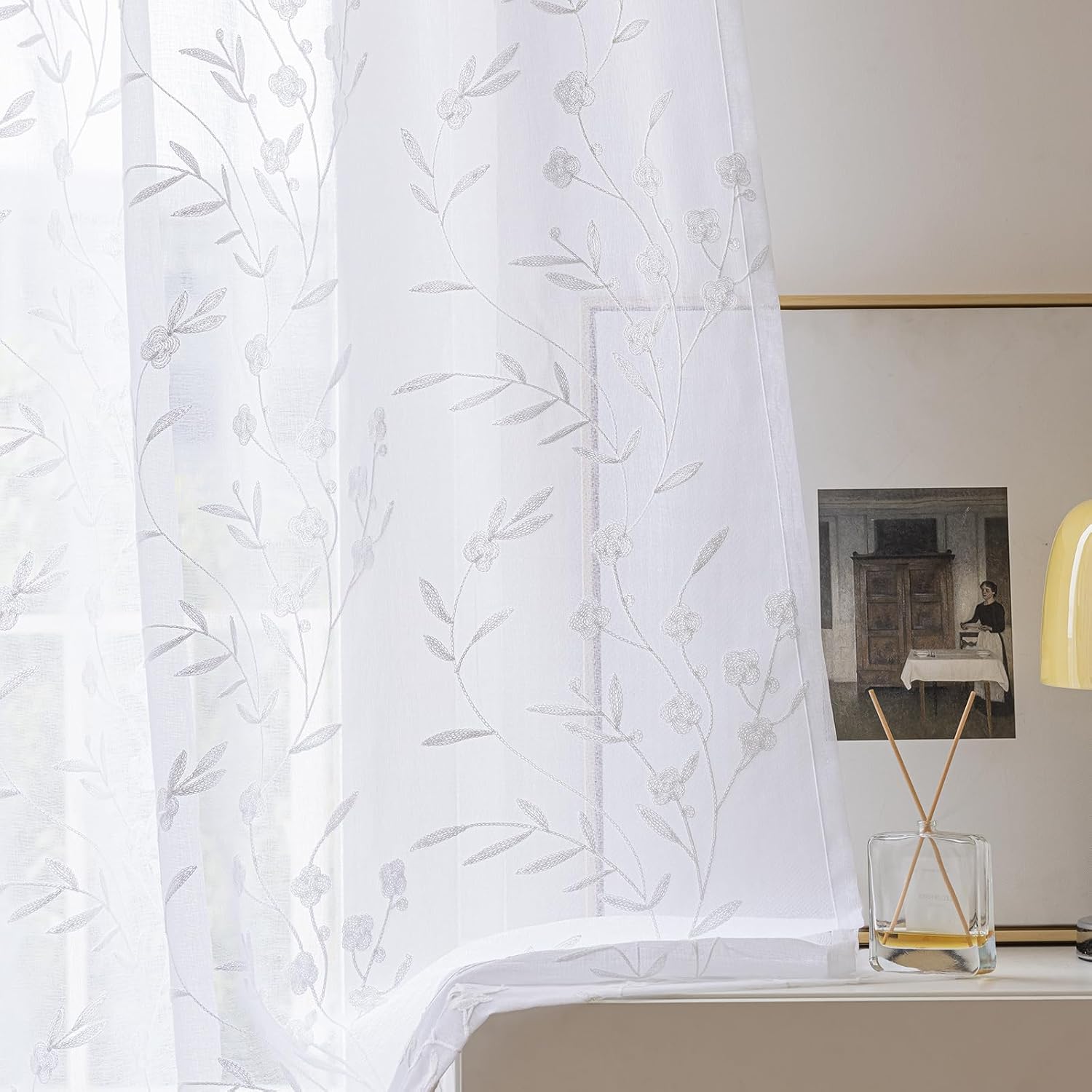 • ☀EMBROIDERY SHEER CURTAINS ARE EASY TO CARE. Machine wash cold, gentle cycle, tumble dry low, light iron as needed.