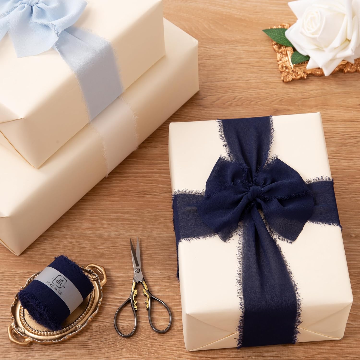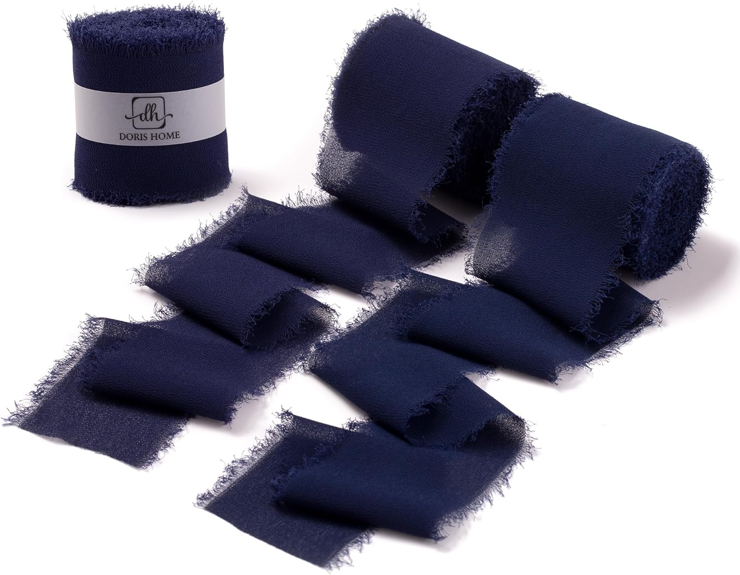 • 【Size and Color】Each roll of chiffon ribbon is 2 inches wide and 7 yards long, perfect for various creative uses such as making bows, decorating wreaths, and DIY crafts. This set includes 3 rolls dark navy blue ribbons. These vibrant frayed ribbons add a rustic charm to your creations, ideal for bouquet wrap or gift ribbon.
