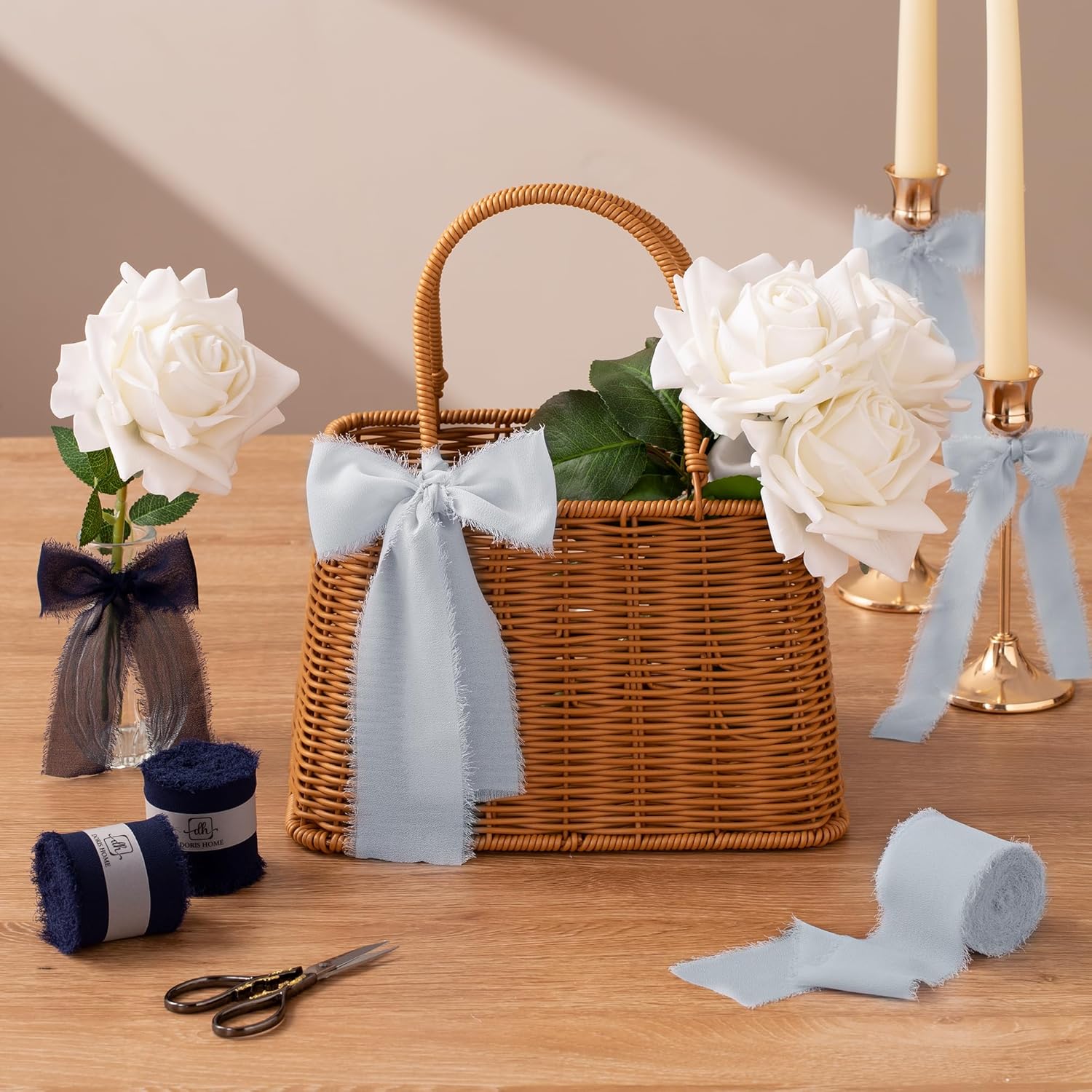 • 【Multiple Applications】This chiffon silk ribbon is great for gift wrapping, wedding decorations, wedding invitations, birthday parties, holiday celebrations, bridal showers, newborn photography props, wedding aisle backgrounds, boutonnieres, flower girl baskets, bouquet wrapping ribbons, Easter baskets, and even Christmas gift wrapping. Its elegant appearance makes it an ideal choice for bohemian or rustic DIY projects.