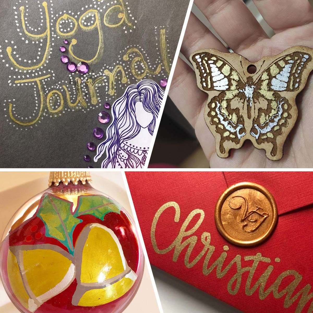 • 【High Quality and Safe】Package with 3 pcs Gold+3 pcs Silver color. Acrylic paint pens are made with high quality abundant oil ink, High purity color, strong covering force,waterproof, fade proof, non-bleeding. non-toxic, no odor, no strong smell. Conform to ASTM D-4236 & EN71-3.