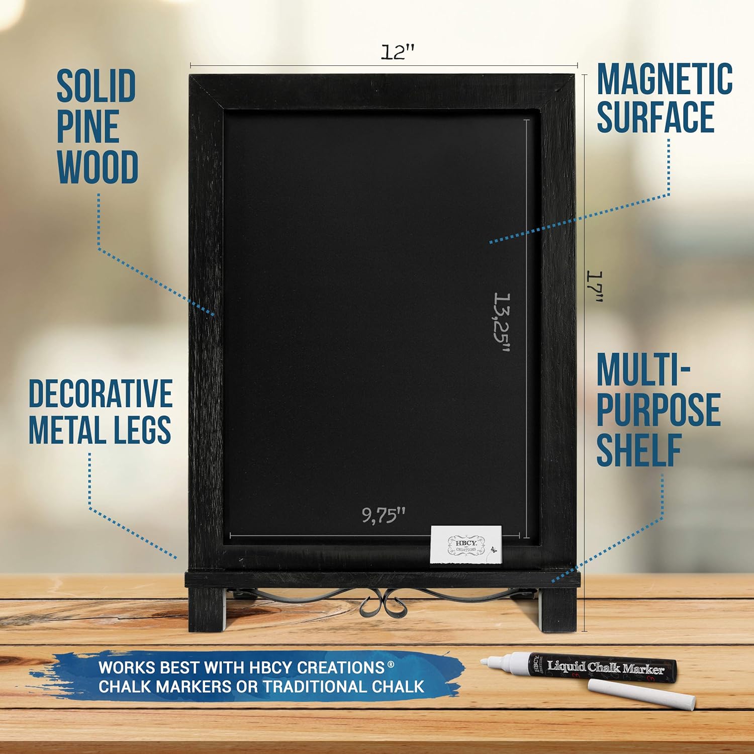 HBCY Creations Rustic Black Wooden Tabletop Chalkboard with Legs/Vintage Wedding Table Sign/Small Kitchen Countertop Memo Board/Antique Wooden Frame (12" x 17", 4- Black)