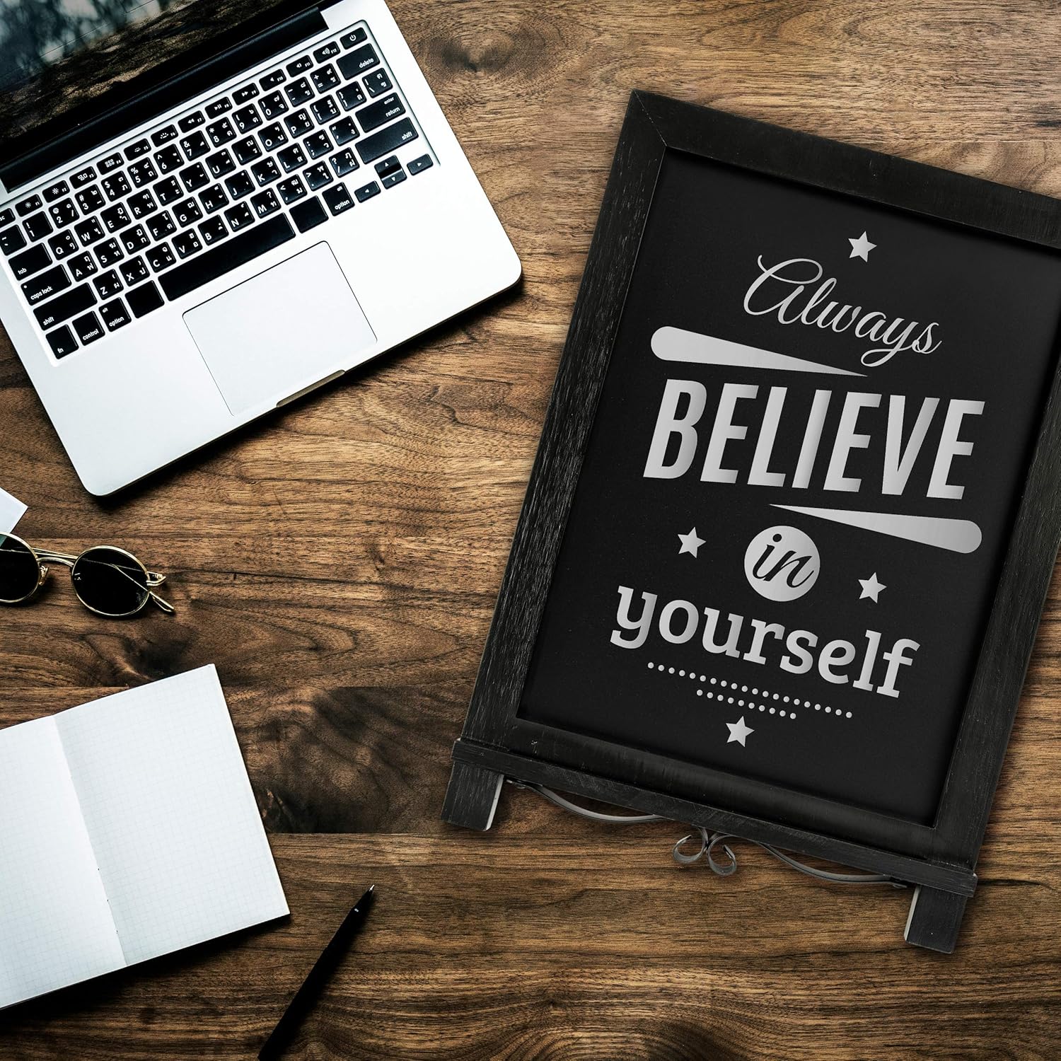 • VERSATILE DESIGN - Our small Chalkboard Easel was designed with maximum versatility. It can be used as a FREESTANDING chalkboard on tabletops or as a HANGING wall chalkboard. Our Patent Pending Design includes foldable metal legs and wall hanging hardware so its ready to use straight out of the box.