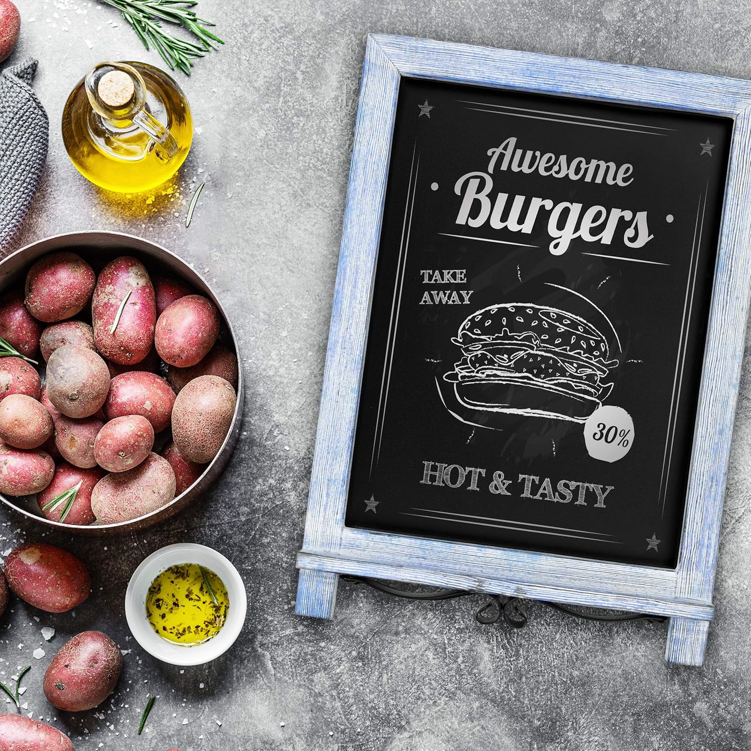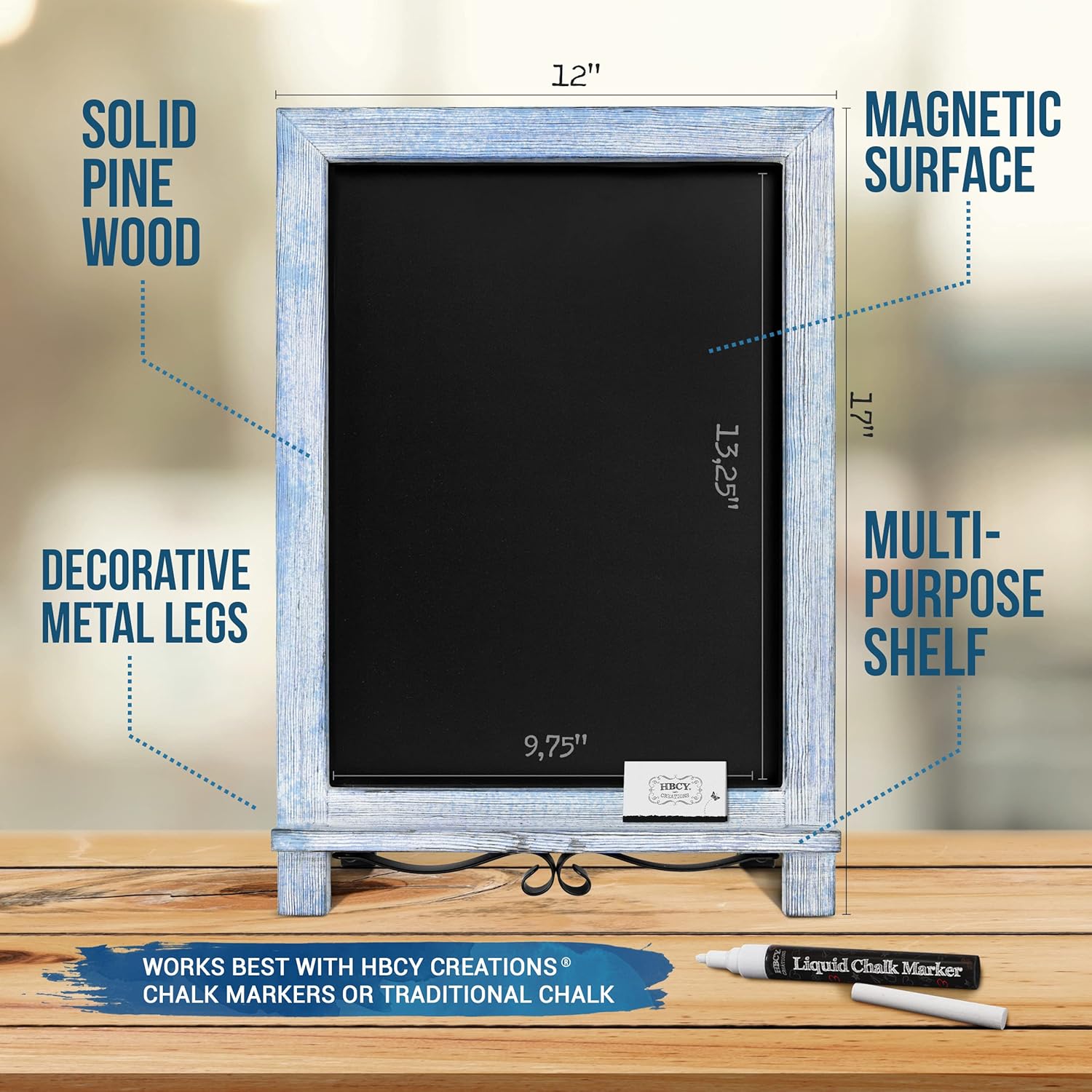 HBCY Creations Rustic Blue & White Tabletop Chalkboard with Legs/Vintage Wedding Table Sign/Small Kitchen Countertop Memo Board/Antique Wooden Frame (12" x 17", 5- Rustic Blue)