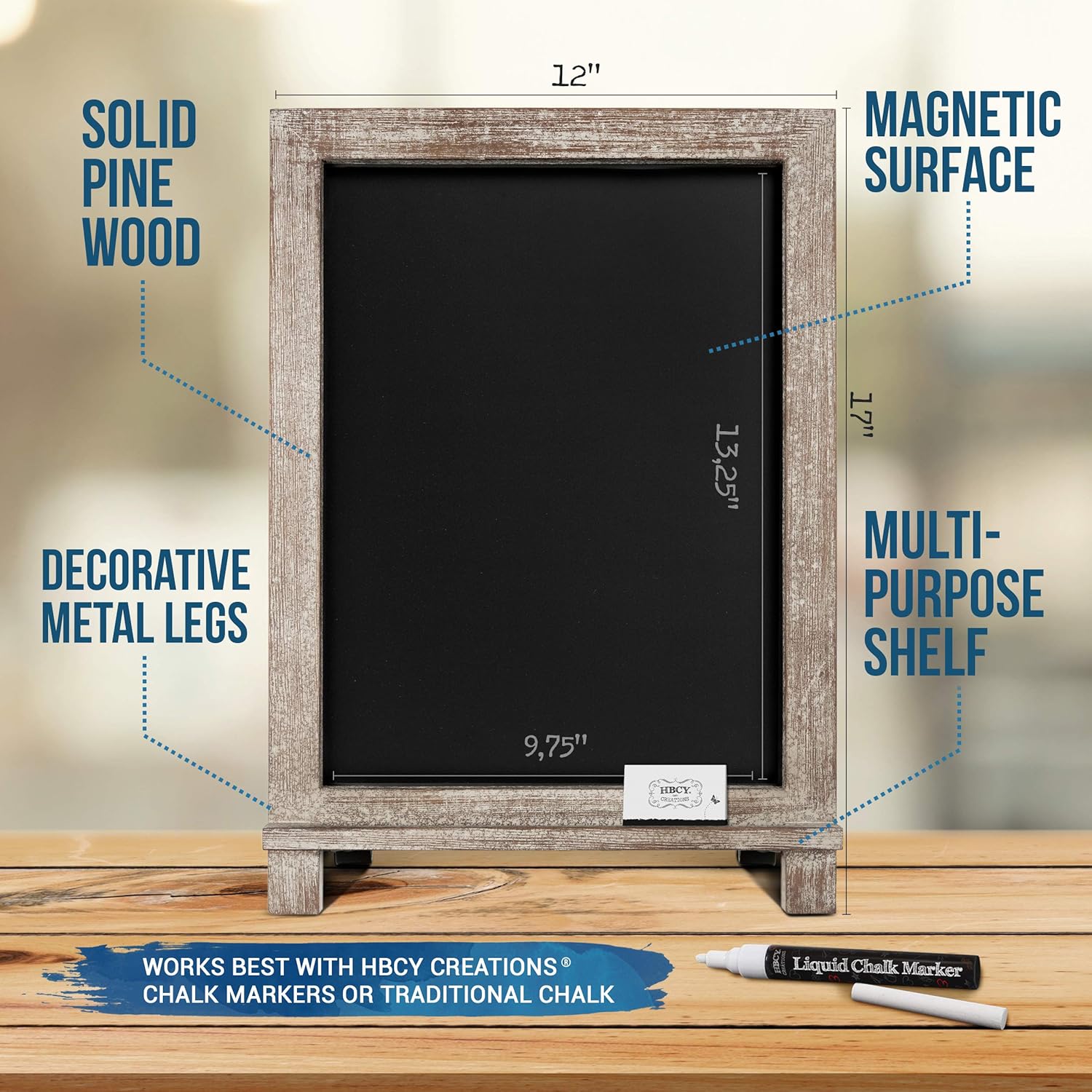 HBCY Creations Rustic Weathered Wooden Tabletop Chalkboard with Legs/Vintage Wedding Table Sign/Small Kitchen Countertop Memo Board/Antique Wooden Frame (12" x 17", 3- Weathered)
