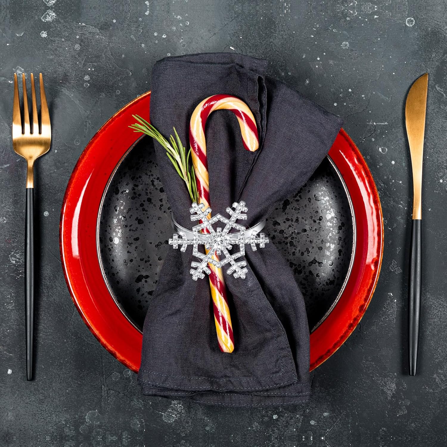 Patelai 24 Pieces Snowflake Napkin Rings Thanksgiving Christmas Napkin Holders Exquisite Household Rhinestone Napkin Rings Set for Christmas Wedding Dinner Party Table Decoration (Silver)