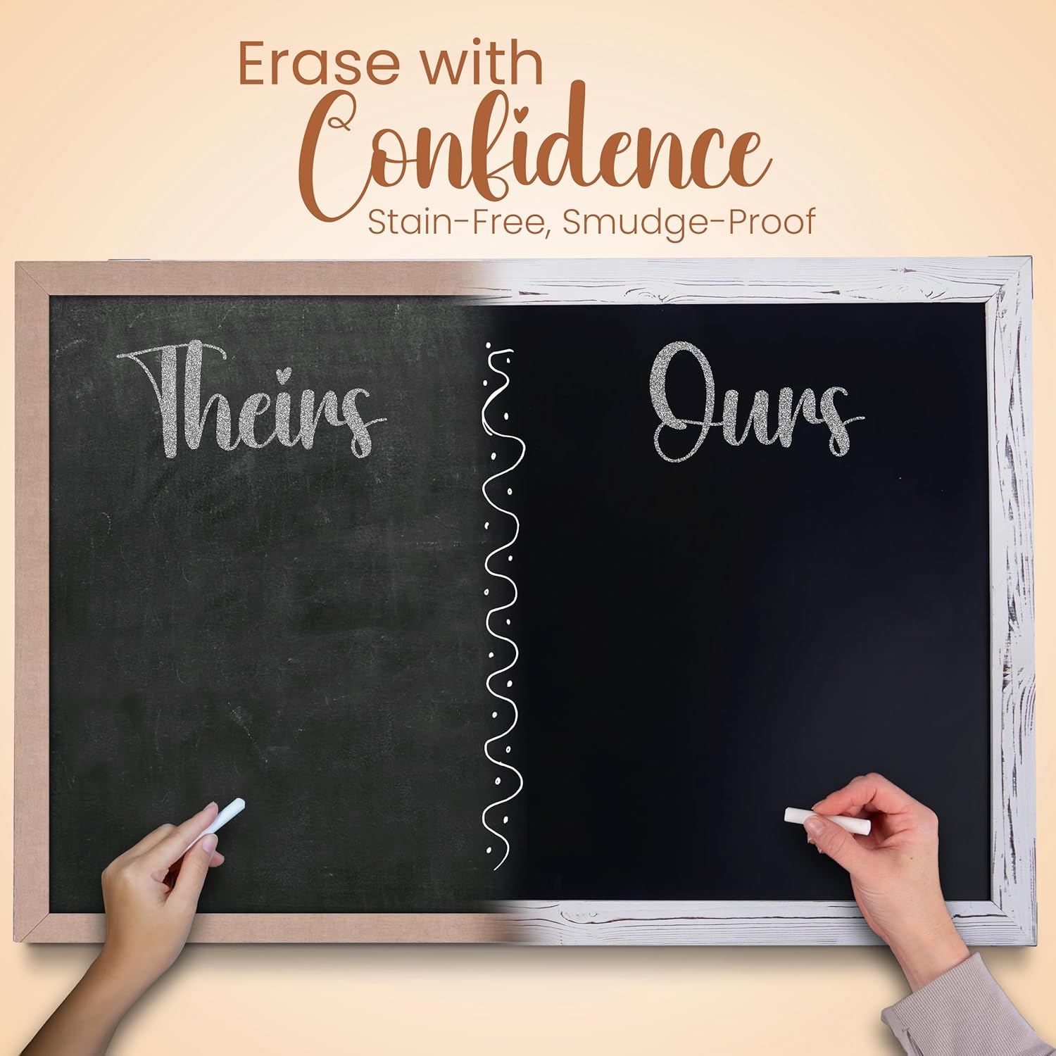 • Chalkboard Magic: Get ready to jot down notes, meal plans, or reminders on our big chalkboard with frame. Perfect for a magnetic chalkboard for wall use, it wipes clean without leaving marks