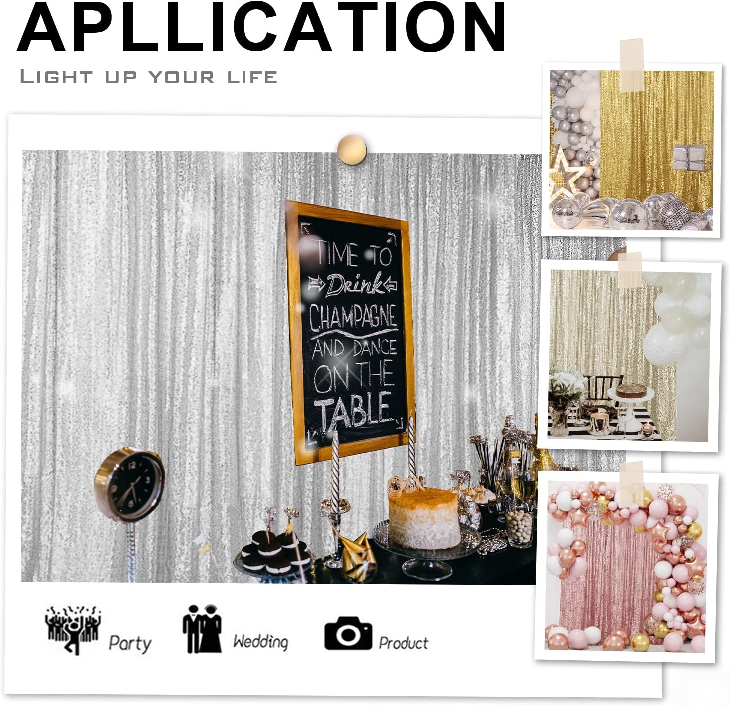 • 【MULTIPLE USES】: The sequin backdrop is Perfect for wedding, party, bridal and baby showers, photography, birthday, Christmas, Prom, home decor, candy buffets, other event decor, and many more