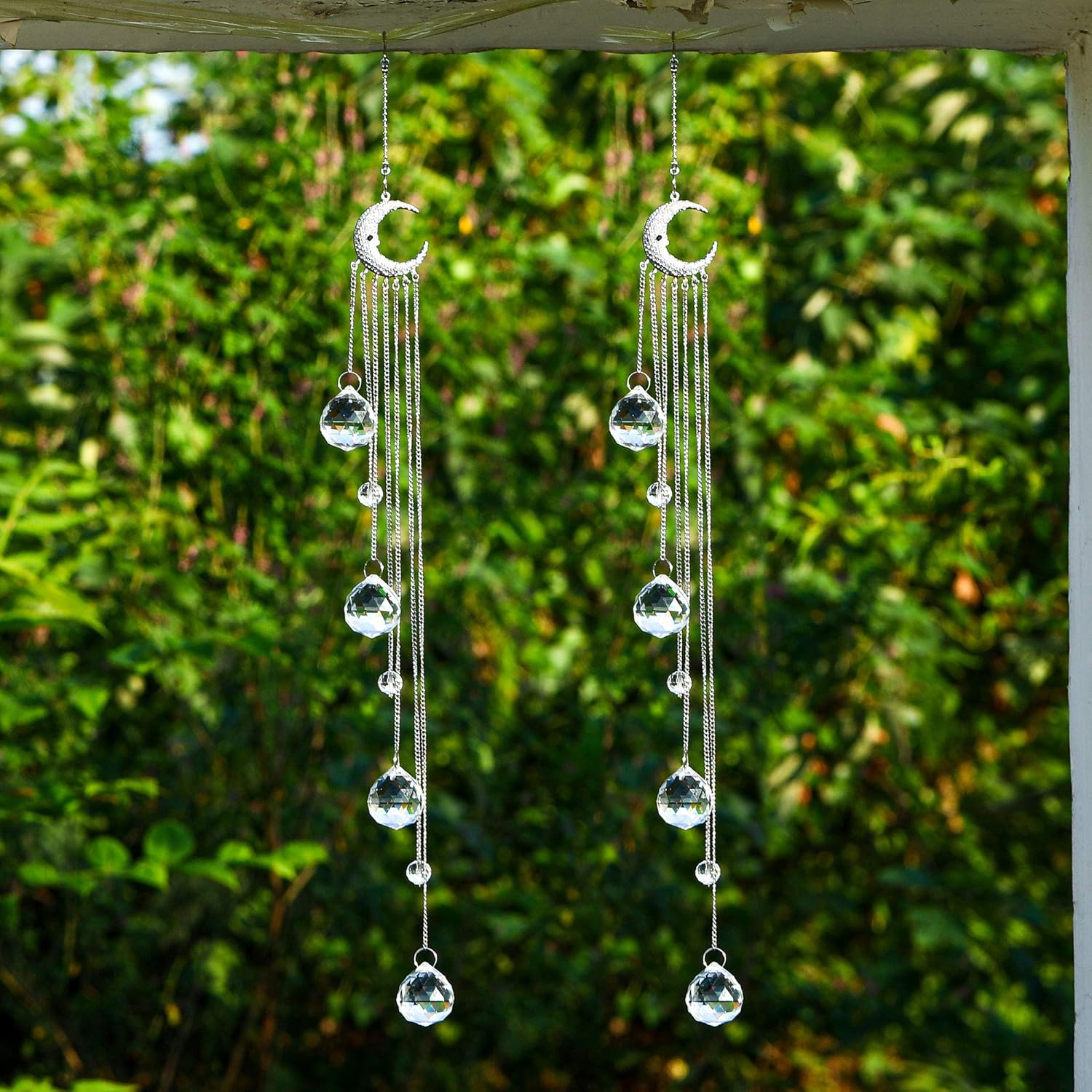 Hanging Clear Crystal Suncatcher Ornaments with Moon Decor Rainbow Maker Crystal Beads Ball Prisms Pendant