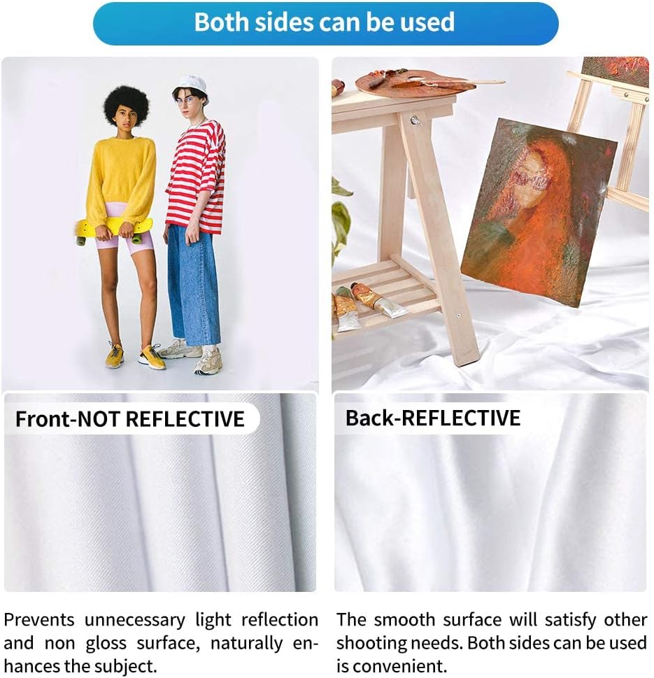 • Premium Quality Fabric: Made from 100% polyester, our white backdrop features a non-reflective front for clean shots and a reflective back for versatile lighting effects. The seamless one-piece design ensures a smooth, professional look with a soft drape
