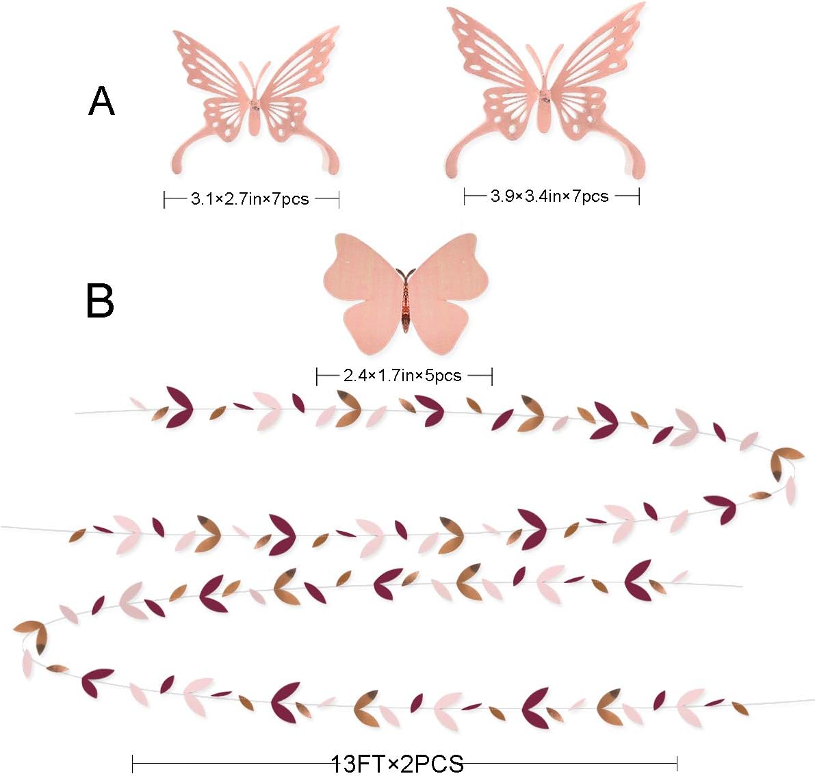 • Package Contains - 2×rose gold burgundy leaves garlands,6×paper flowers pom poms,3×paper lanterns,2×white paper Honeycomb balls,24×rose gold butterfly decals stickers,3×burgundy ribbon.Total 40 pcs.