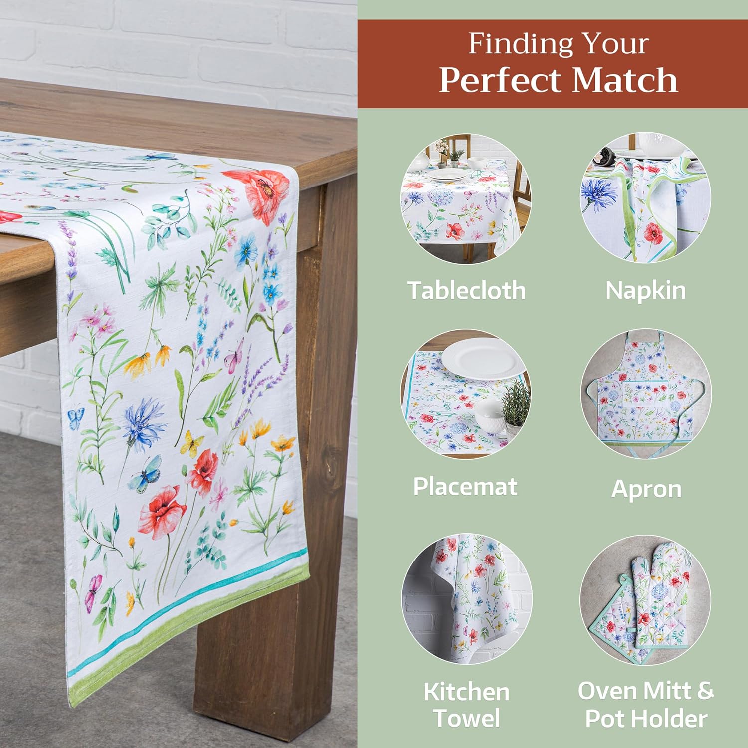 Maison d' Hermine Table Runner 100% Cotton Double Layer Table Runners 108 inches Long Decorative for Home Kitchen Dining Party Wedding Bridal Shower Spring Summer (Just Floral, 14.50" x 108")