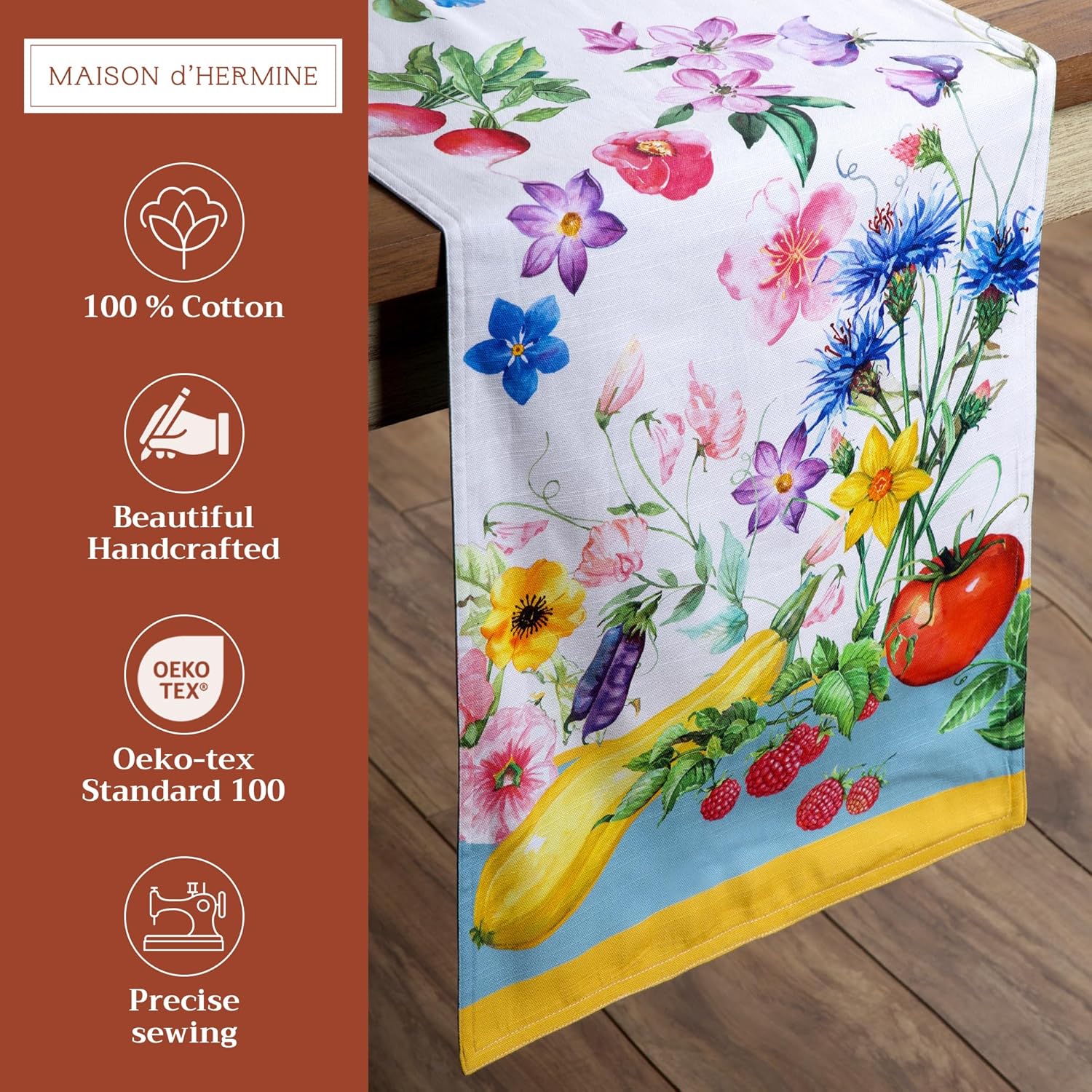 Maison d' Hermine Table Runner 100% Cotton Double Layer Table Runners 108 inches Long Decorative for Home Kitchen Dining Party Baby Shower Wedding Bridal Shower Spring Summer (Giverny, 14.50" x 108")