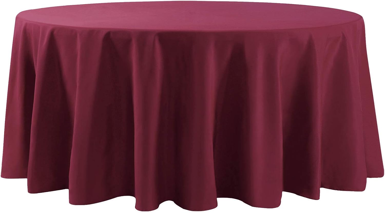 132 inch Round Tablecloth Washable Polyester Table Cloth Decorative Table Cover for Wedding Party Dining Banquet(132 inch,Burgundy)
