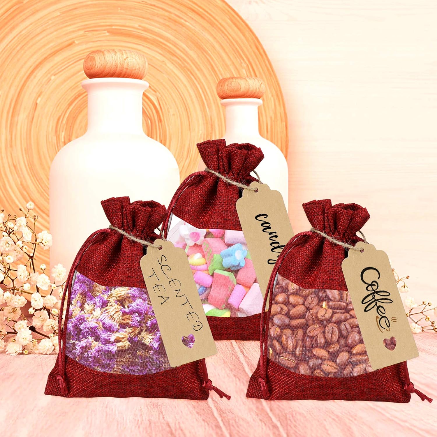 • 【WHAT YOU GET】- 50 pieces burlap gift bags and 50 pieces kraft paper tags with rope,Made of high-quality linen and sheer organza material,lightweight,strong and durable, reusable and environmental,enough quantity for meeting your use and replacement,you can also share the burlap bags with your family and friends