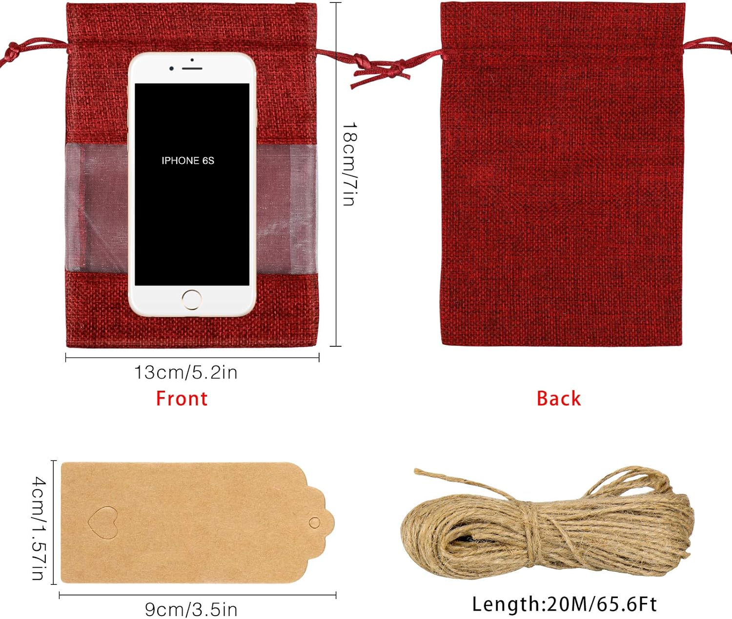 • 【DRAWSTRING DESIGN】- The linen burlap sheer bag feature red linen color base and sheer organza design,for displaying the items and offering easy identification,drawstring design makes it easier for you to place the bag,which can be hung on the hook or string to save space