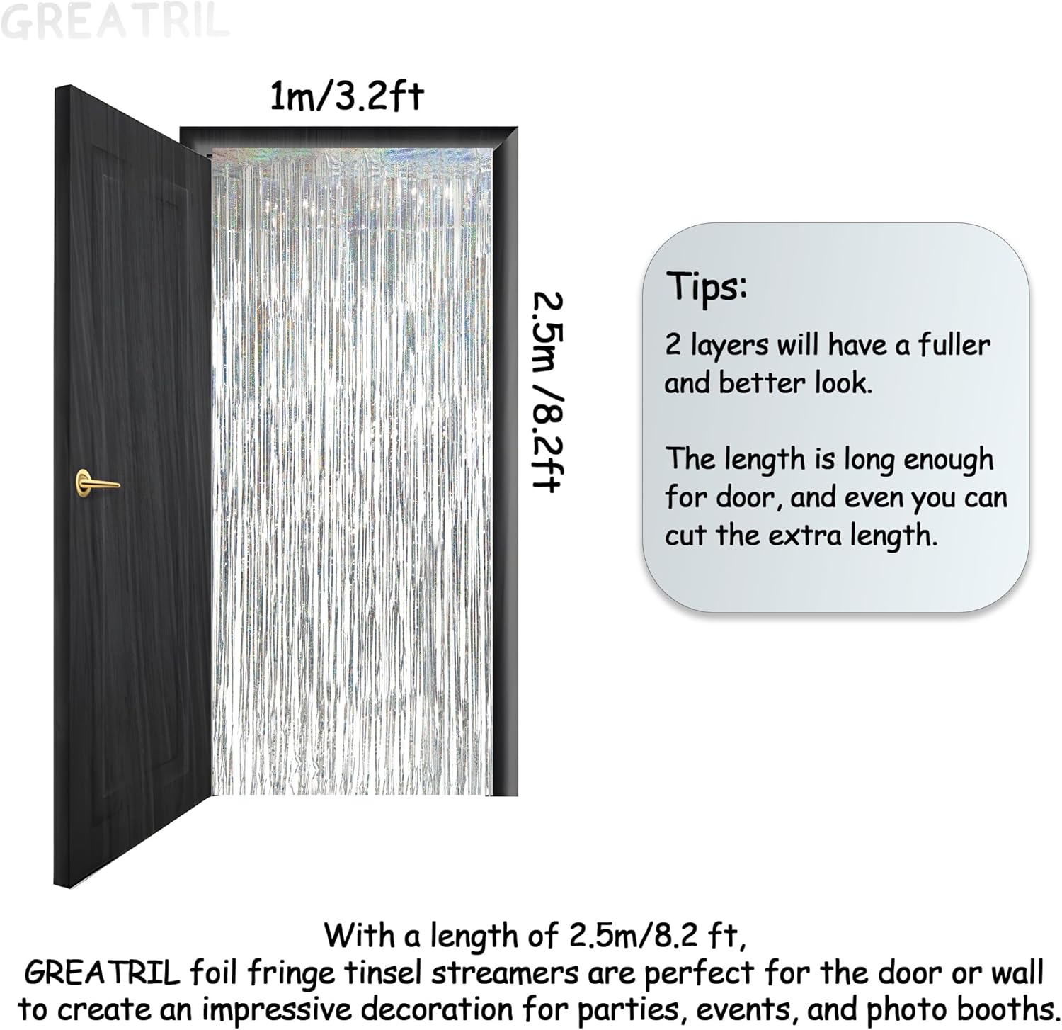 • Durability: GREATRIL Foil fringe streamers are sturdy and flexible PET, making them resistant to breaking or tearing.