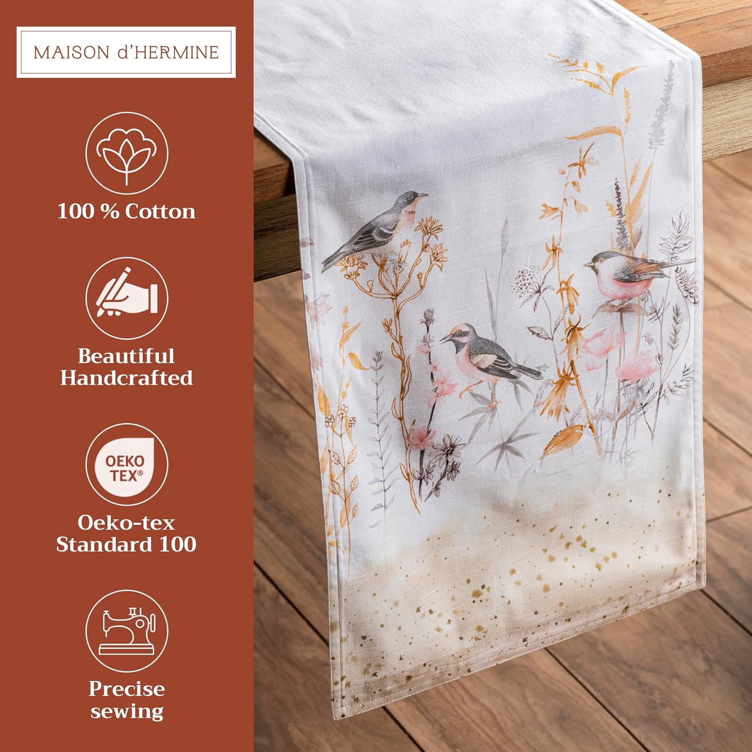 Maison d' Hermine Table Runner 100% Cotton Double Layer Table Runners 108 inches Long Decorative for Home Dining Party Wedding Bridal Shower Spring Summer (Meadow Florals - Beige, 14.50" x 108")