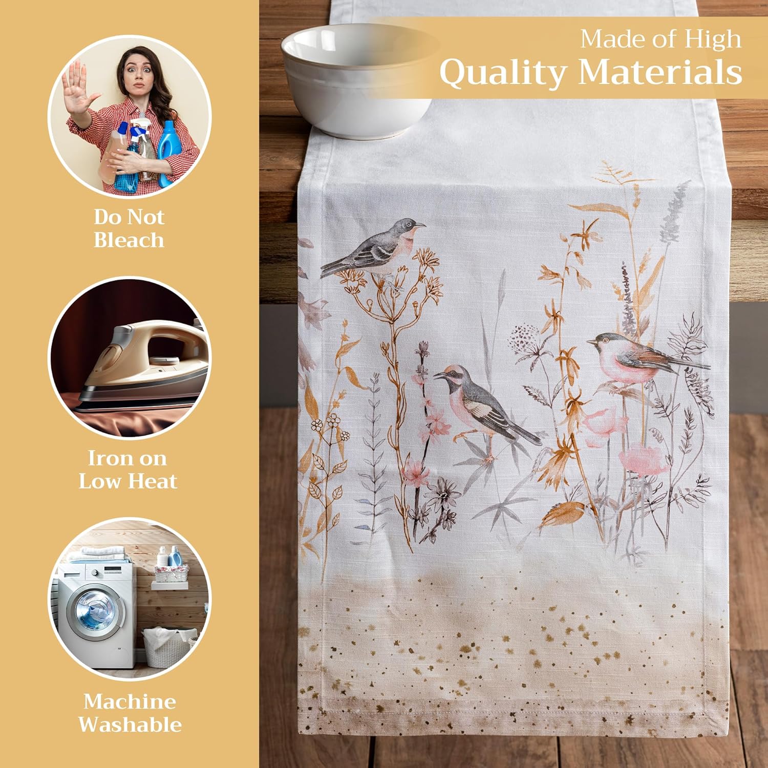 Maison d' Hermine Table Runner 100% Cotton Single Layer Table Runners 108 inches Long Decorative for Home Dining Party Wedding Bridal Shower Spring Summer (Meadow Florals - Beige, 14.50" x 108")