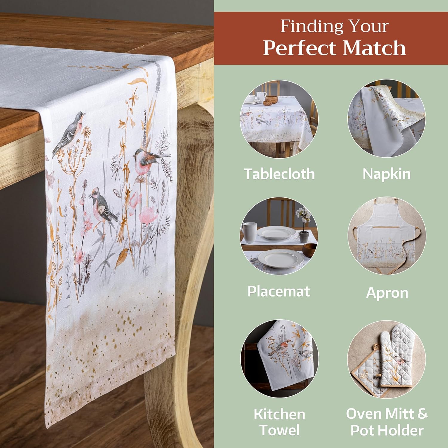 • Enhance your home: This elegant table runner adds a refined touch on its own or pairs beautifully with matching tablecloth, cloth napkins, and more . Perfect for kitchen, dining room, or seasonal gatherings.